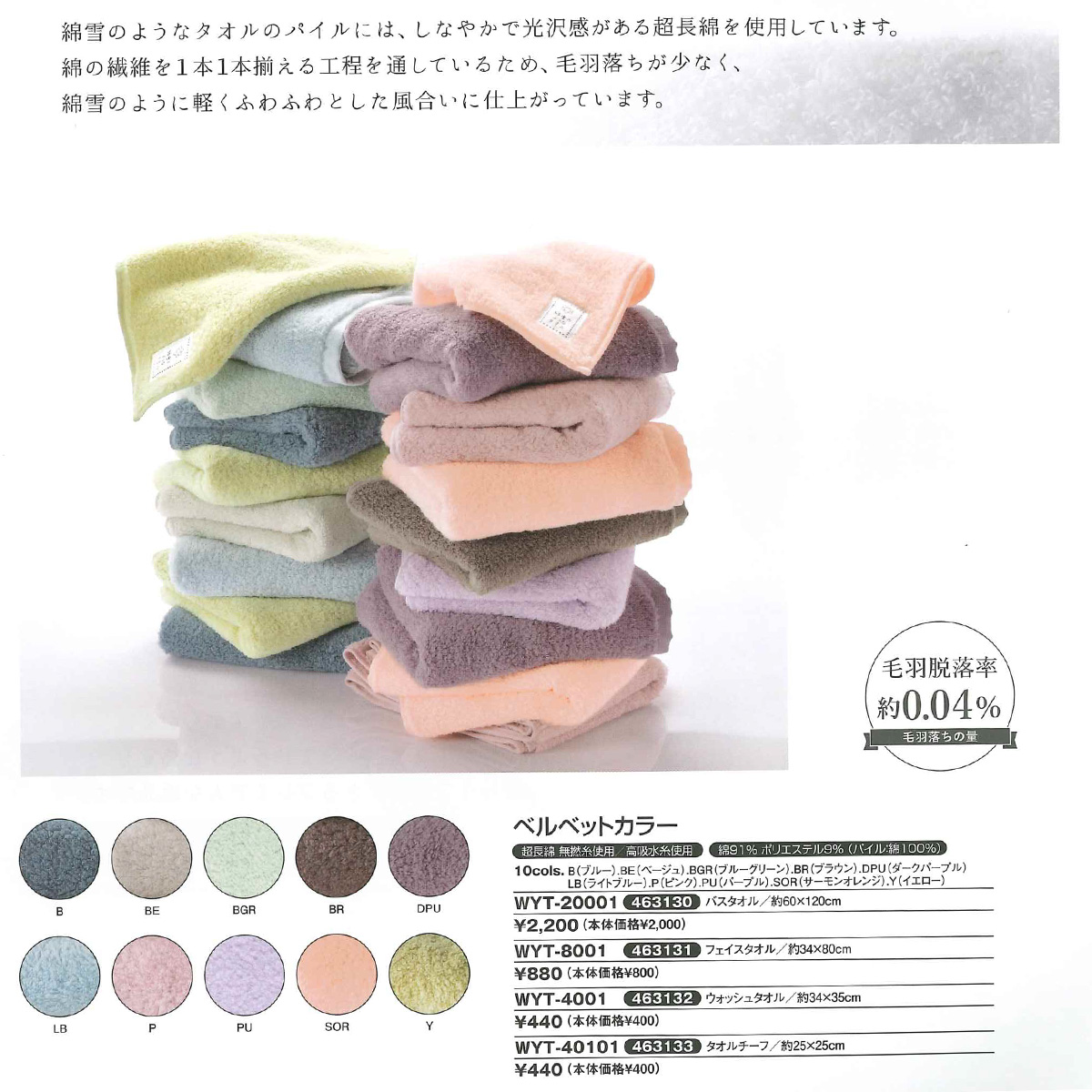 綿雪ベルベットカラー フェイスタオル ホワイト WYT-8001W【メーカー在庫限り】