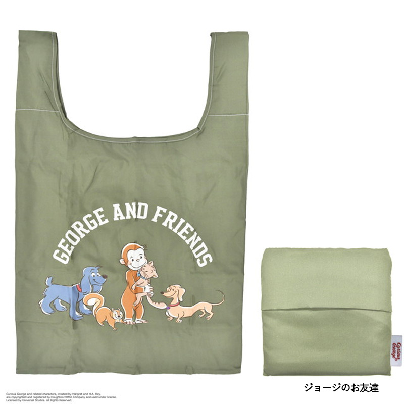 おさるのジョージデザインの再生ポリエステル素材を使用した環境にも優しいエコバッグです。