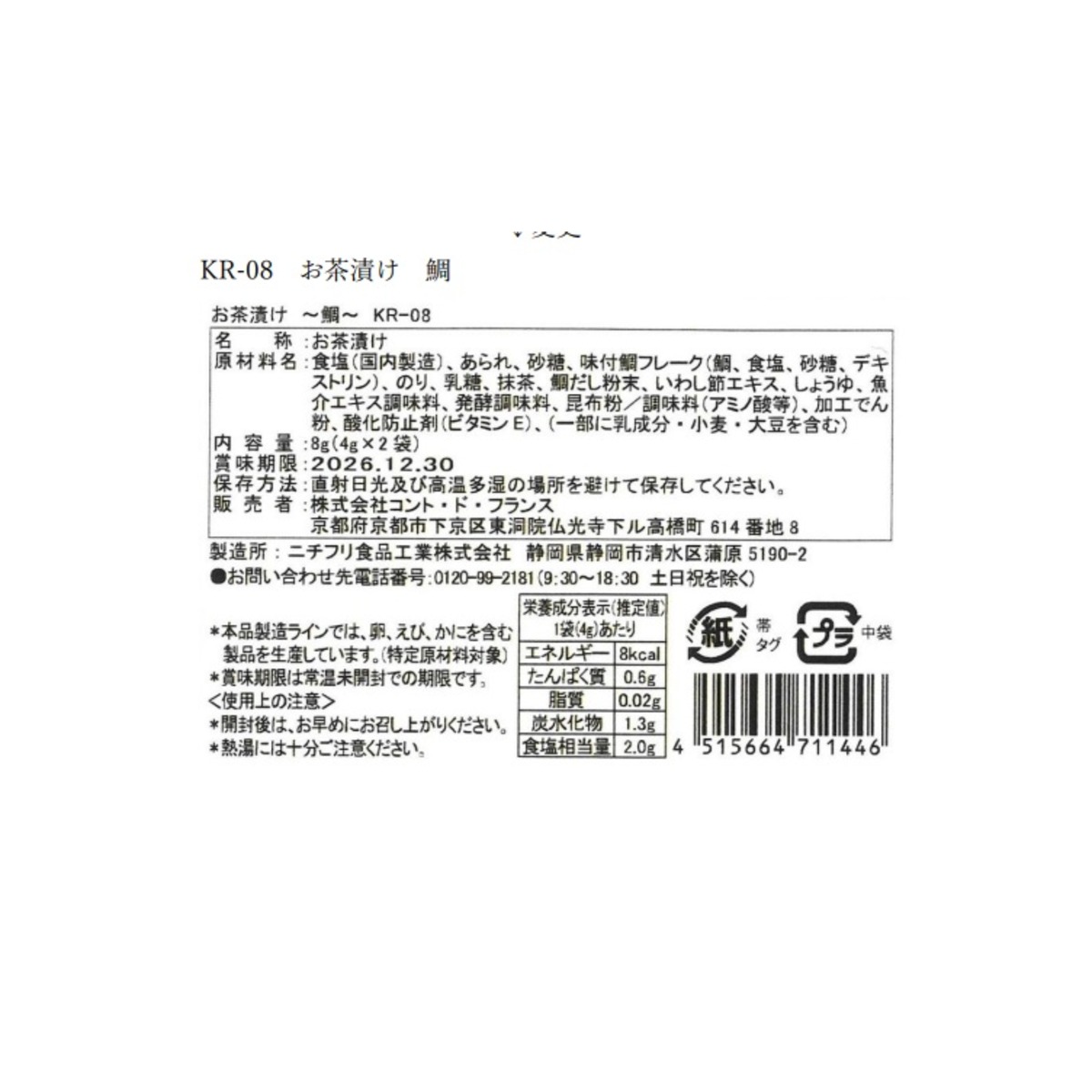 コント・ド・フランスの人気商品”お茶漬け”に新たな味が加わりました。