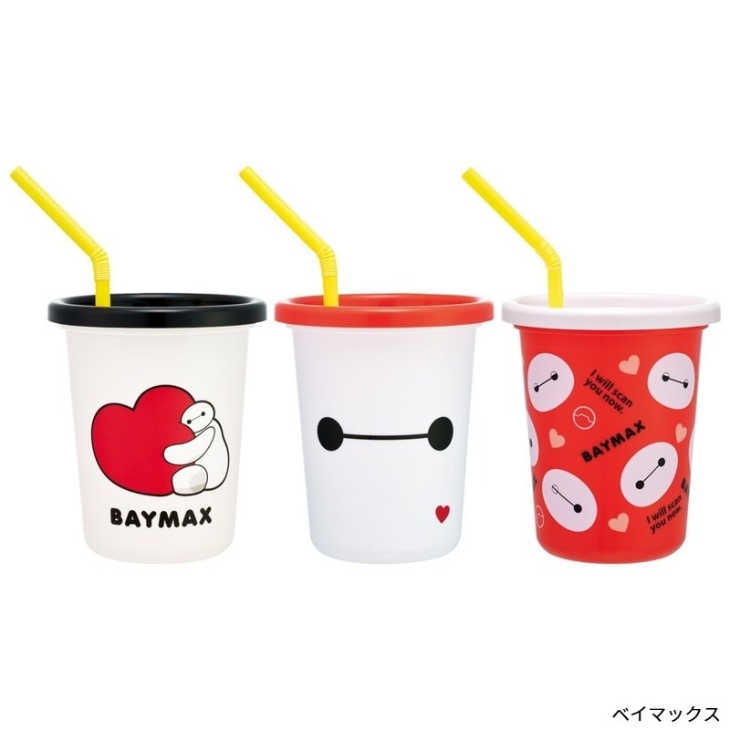 可愛いキャラクターのフタ付きコップ3個セット。