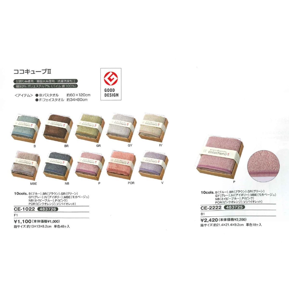 | サイズ | 【F1 フェイスタオル】箱サイズ:約13×13×8.2cm 【B1 バスタオル】箱サイズ:約21.4×21.4×9.2cm |