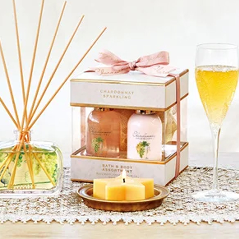 白ぶどう果汁があふれだすような、みずみずしいシャルドネの爽やかな香りが織りなすフレグランスシリーズ『シャルドネ』。