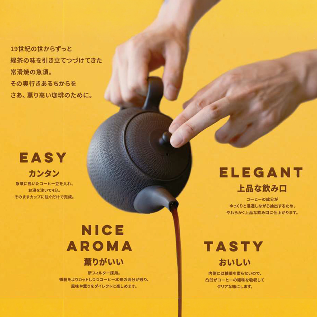 日本でも有数の陶器産地、常滑焼から生まれた珈琲急須です。