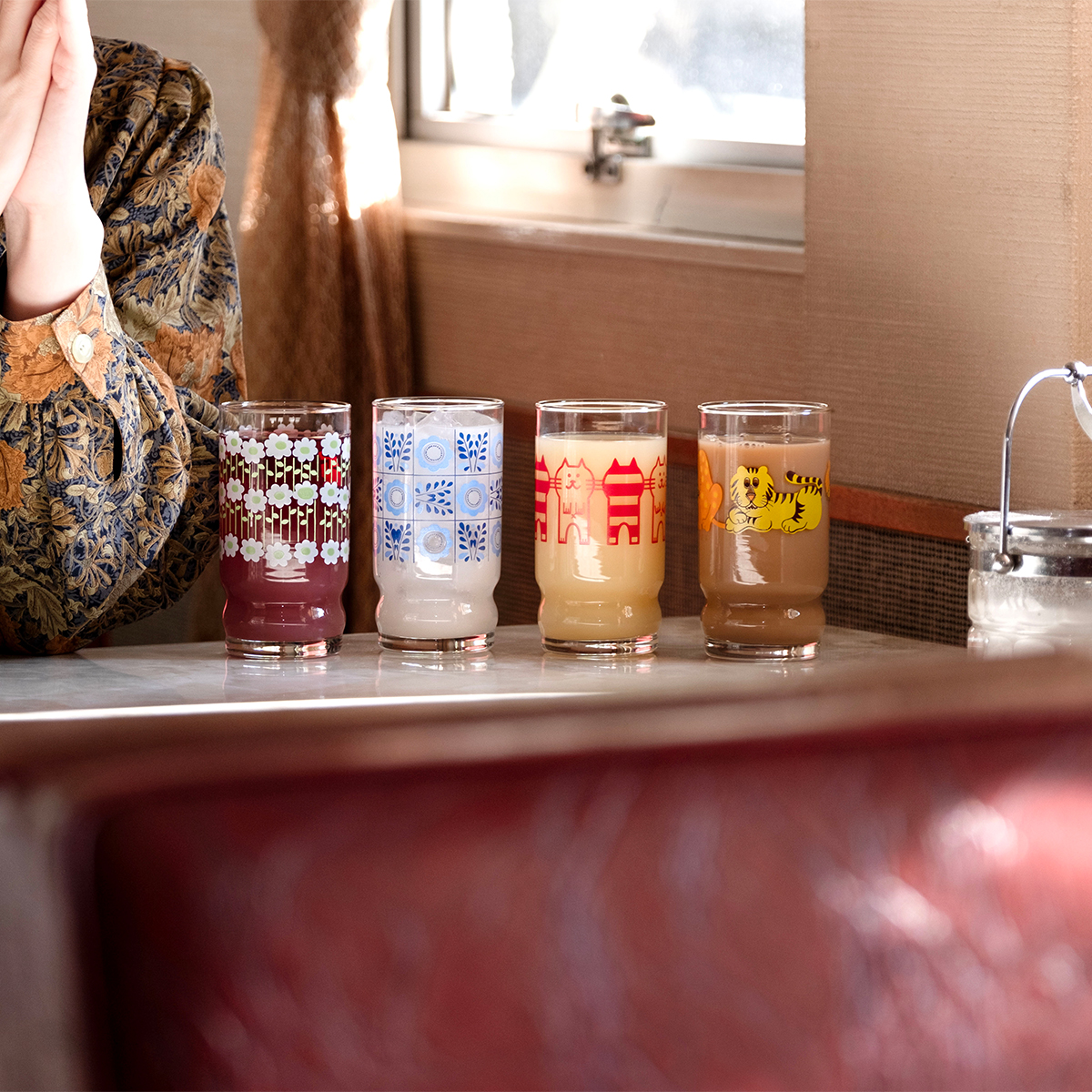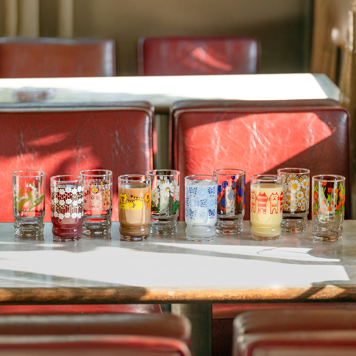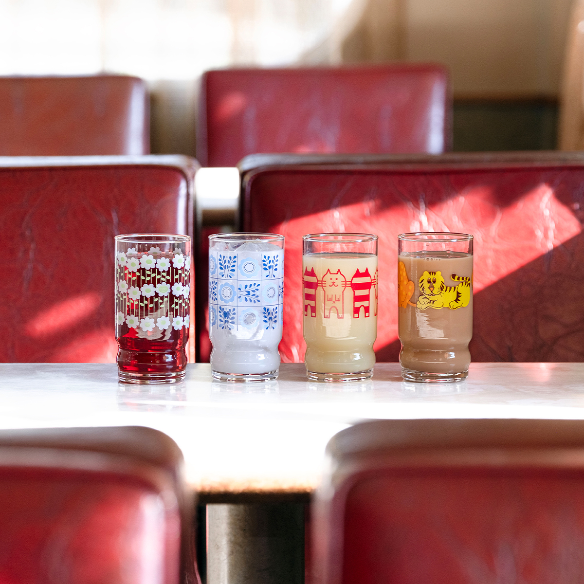 くびれがあることで持ちやすく、どんなドリンクとも相性の良いスタンダードな形状も魅力。現代でもファンの多い子のコップを、アデリアレトロシリーズとして復刻しました。