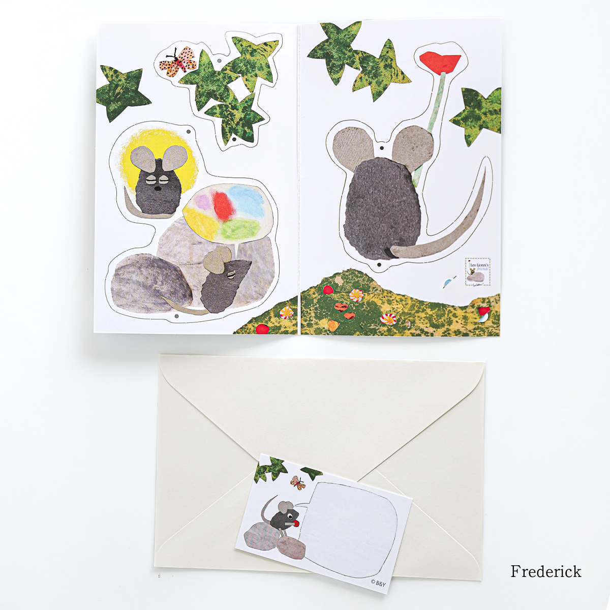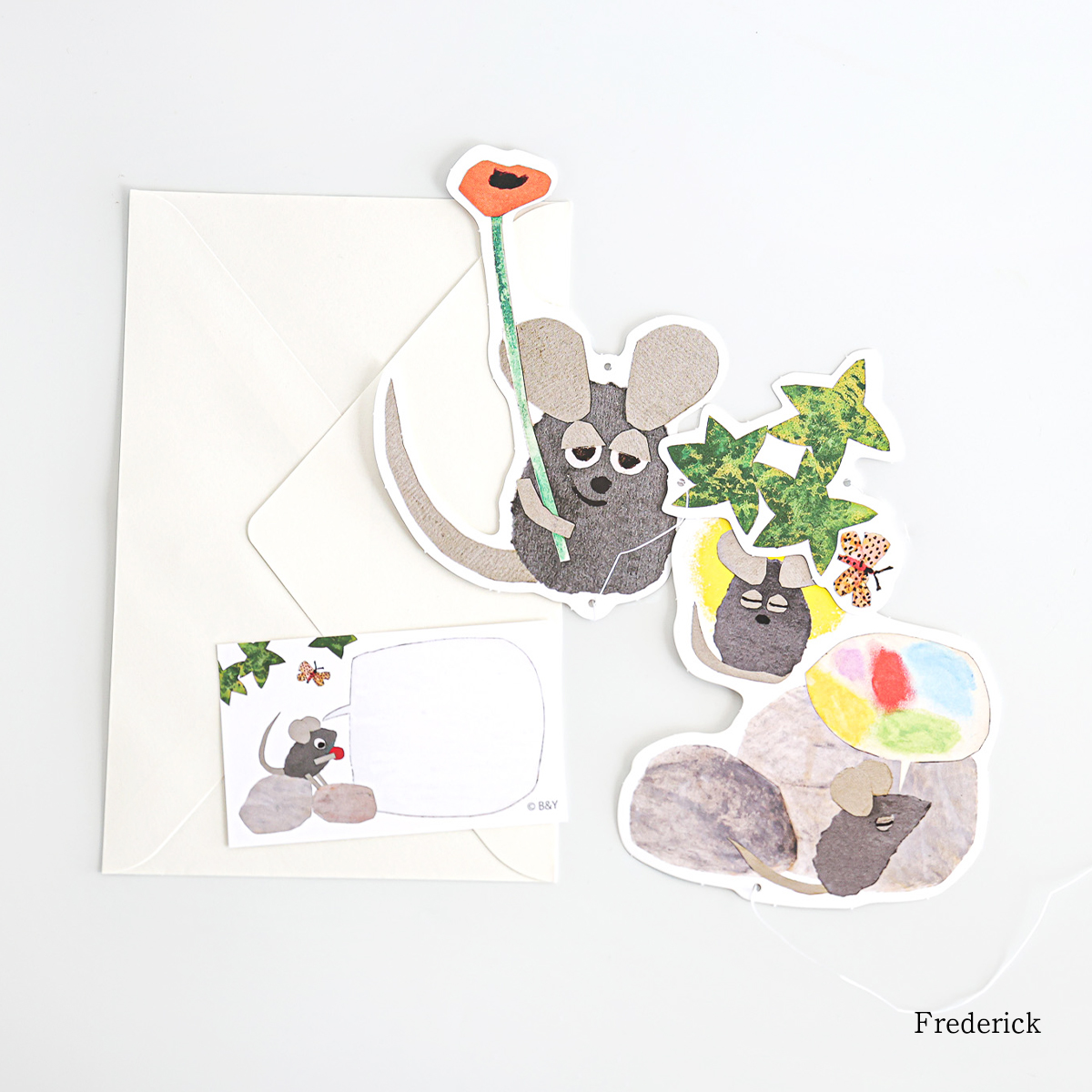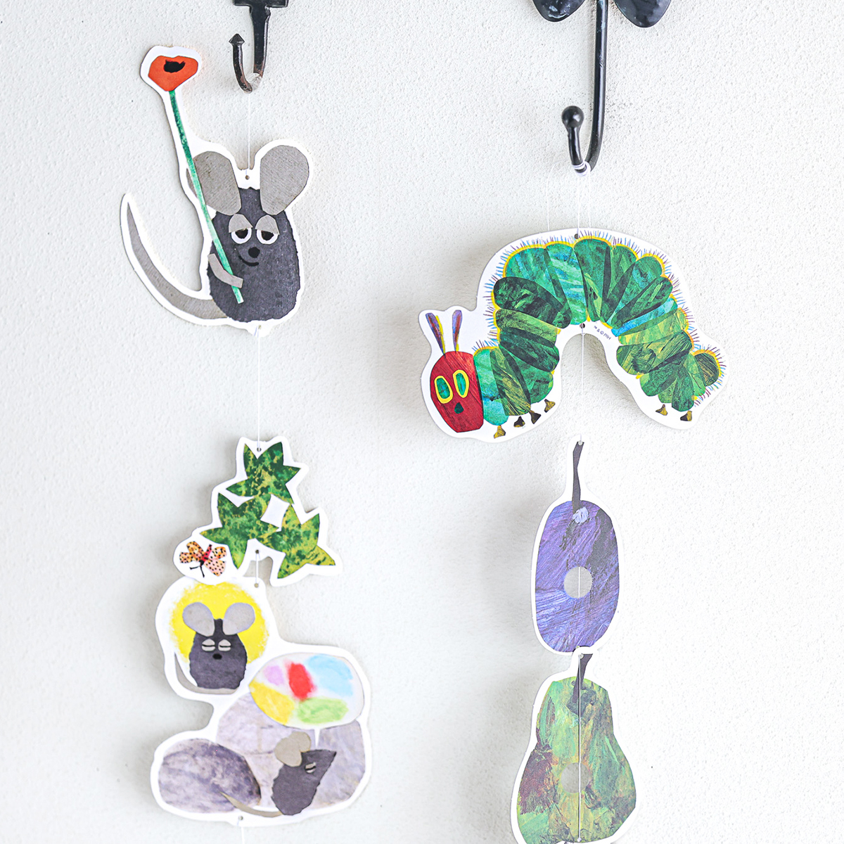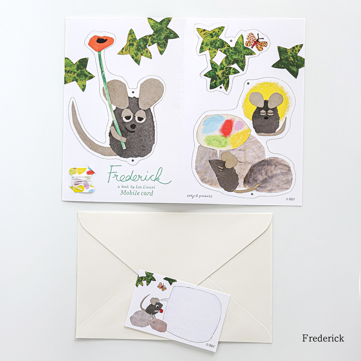 絵本でおなじみの「フレデリック」「はらぺこあおむし」のゆらゆら揺れるかわいいモビールを簡単に作ることのできるカードキット。