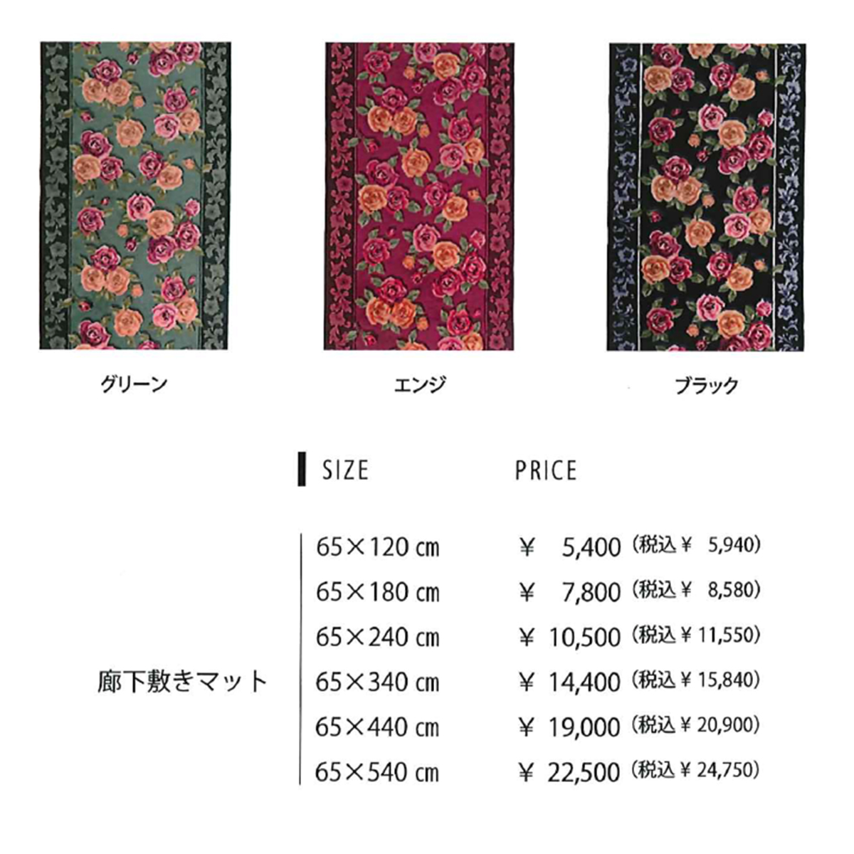 エレガントローズ 廊下敷きマット 日本製 65×120~540cm