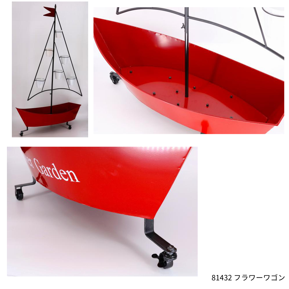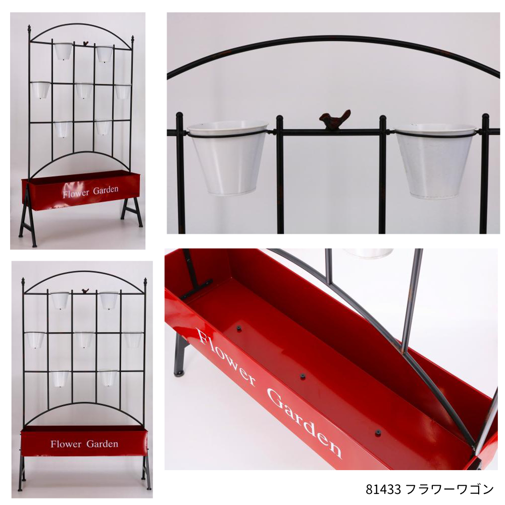 | 素材 | 【81430 フラワーワゴン】鉄 【81431 フラワーワゴン】鉄・木 【81432 フラワーワゴン】鉄 【81433 フラワーワゴン】鉄 【85746 フラワーワゴン】鉄 【86405 ワゴン】鉄 |