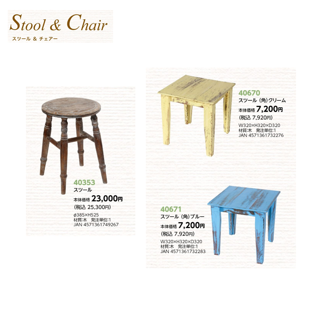 素材 | 【40350 スツール】MDF 【40351 スツール】MDF 【40352 スツール】木 【40353 スツール】木 【40670 スツール(角)クリーム】木 【40671 スツール(角)ブルー】木 【40691 チェアー ブルー】木 【80531 チェアー】鉄 |