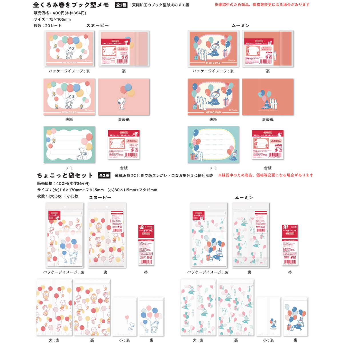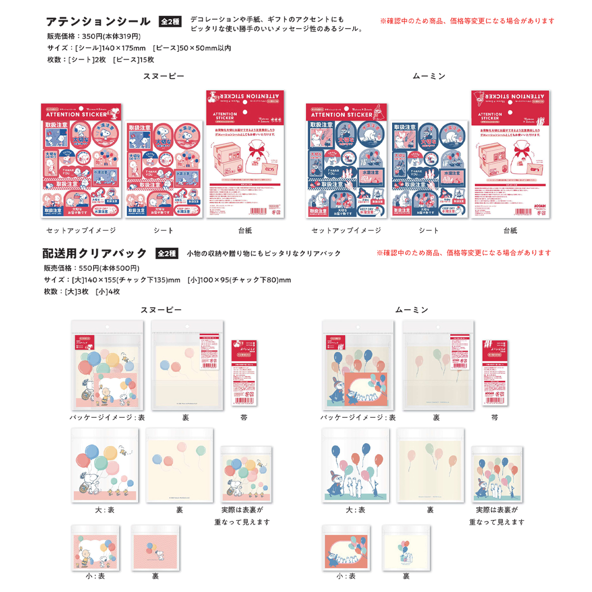 【フタバ】おくるシリーズ スヌーピー&ムーミン アテンションシール&配送用クリアバッグ&ちょこっと袋&メッセージメモパッド 梱包