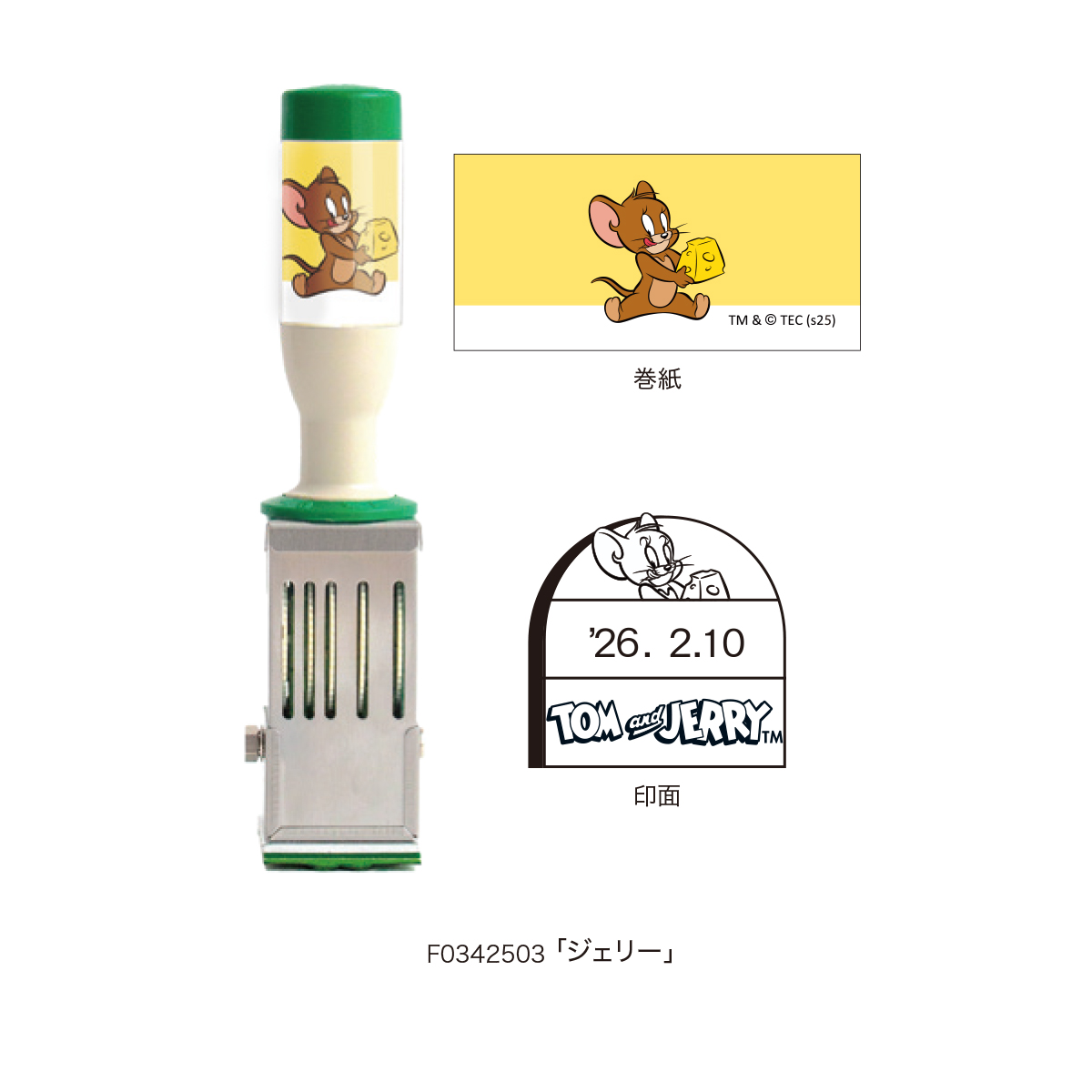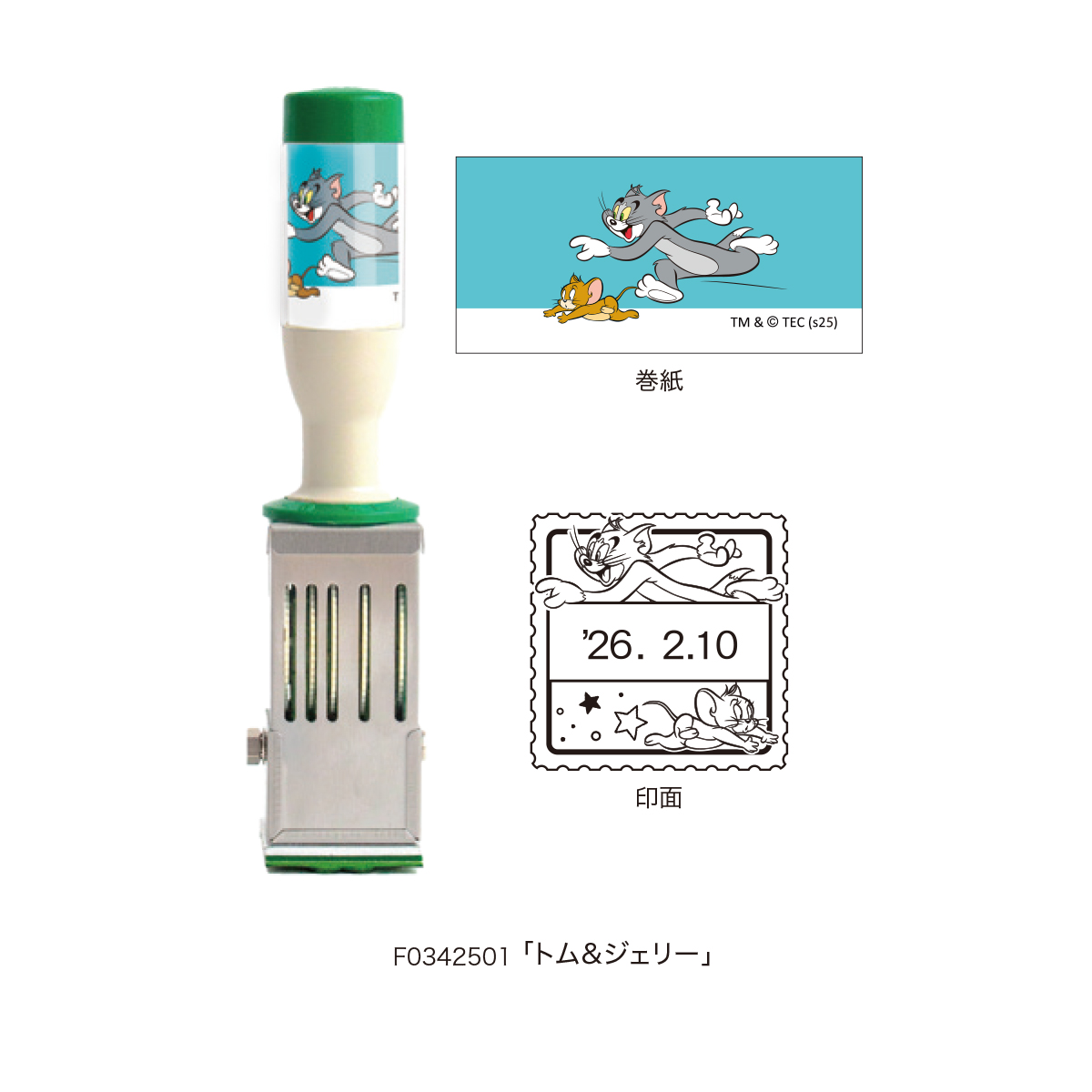 トムとジェリーのかわいい姿がデザインされた日付印です。