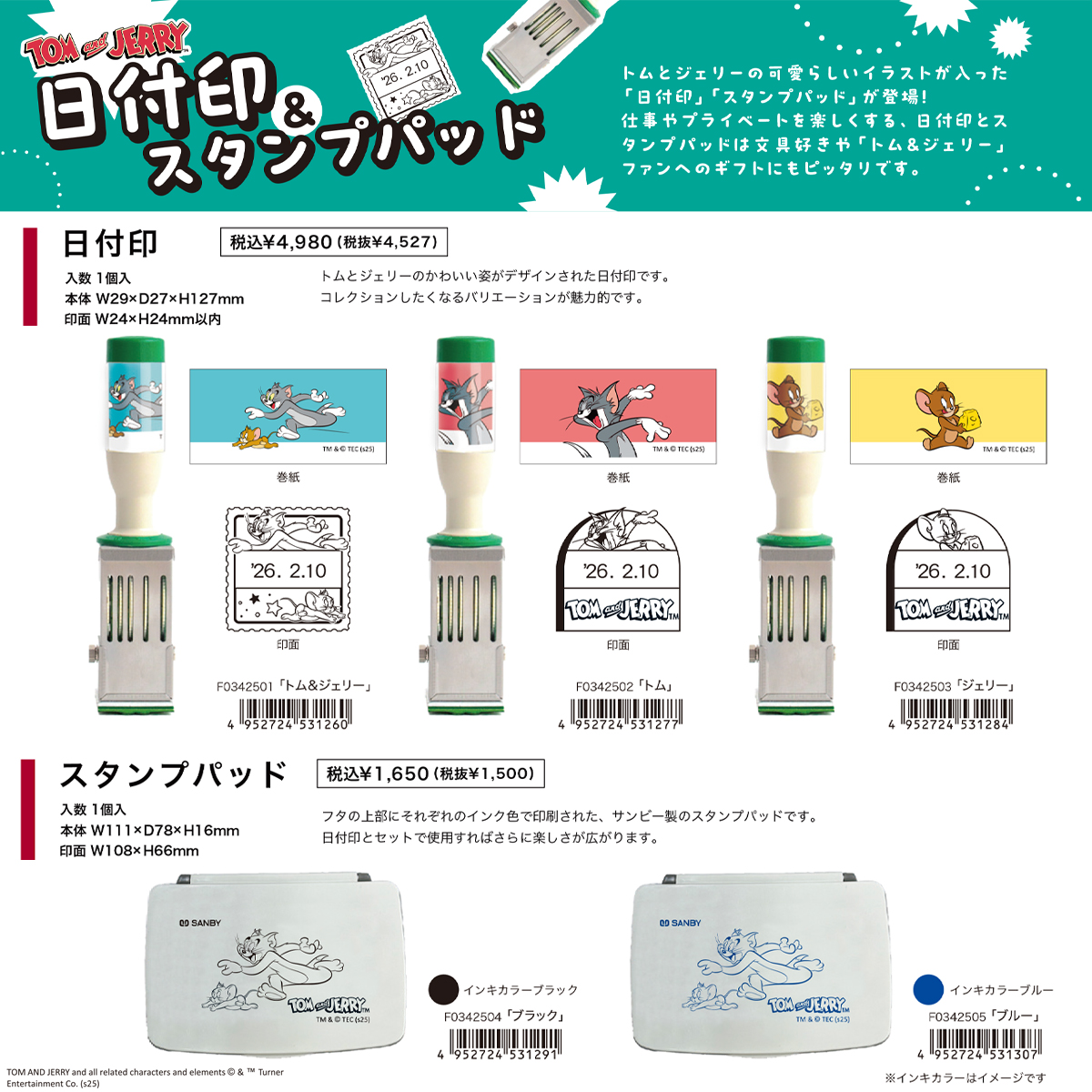 トムとジェリーの可愛らしいイラストが入った「日付印」「スタンプパッド」が登場!