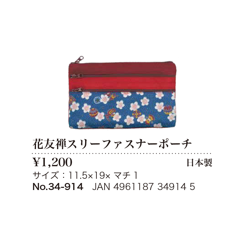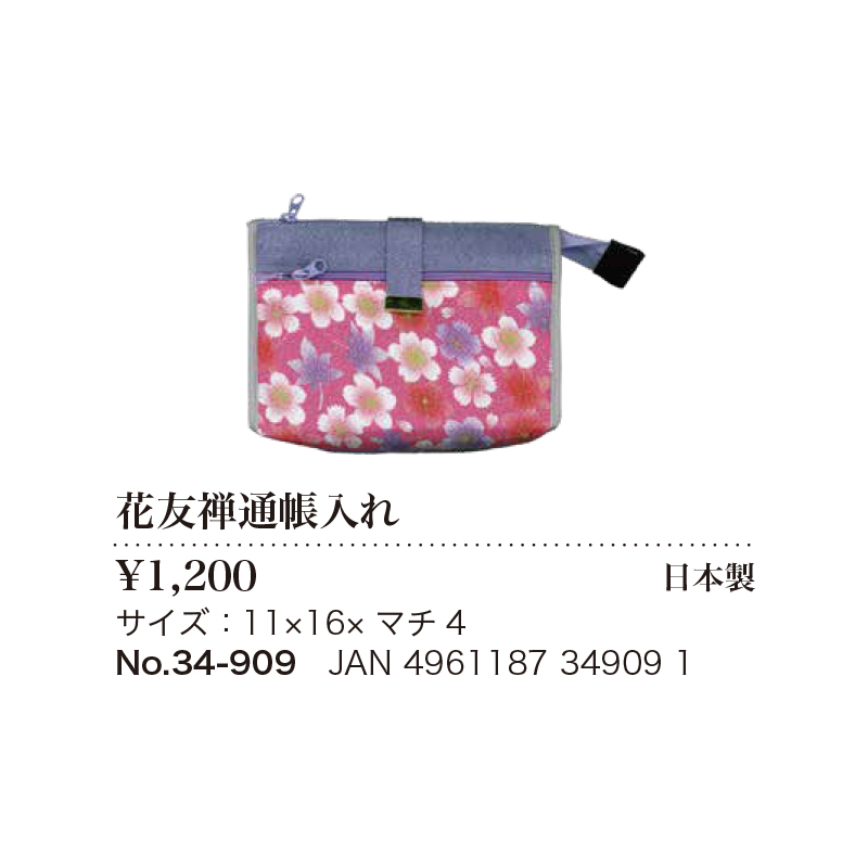 サイズ | 【花友禅 通帳入れ】11×16×マチ4cm 【花友禅 新保険証・診察券入れ】10×13.5cm 【花友禅 スリーファスナーポーチ】11.5×19×マチ1cm |