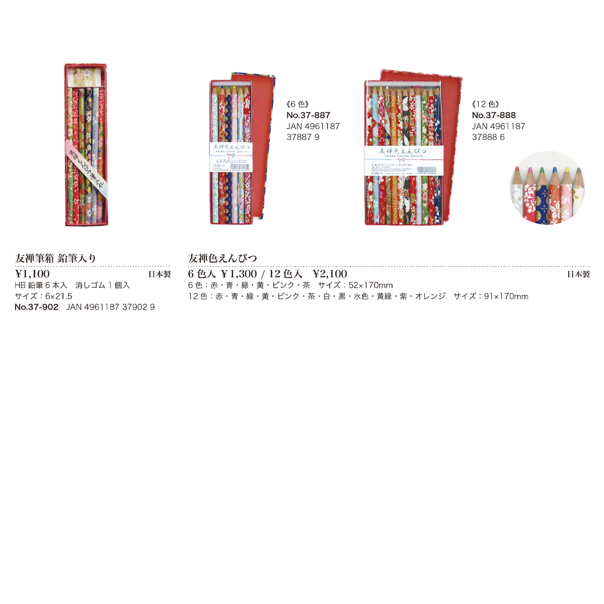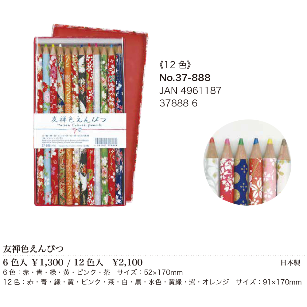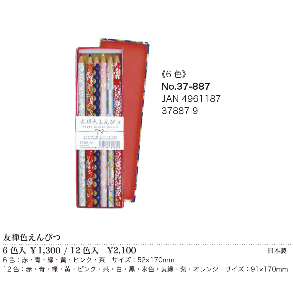 素材 | 【友禅筆箱 鉛筆入り】HB鉛筆6本入、消しゴム1個入 【友禅色えんぴつ 6色】6色:赤・青・緑・黄・ピンク・茶 【友禅色えんぴつ 12色】12色:赤・青・緑・黄・ピンク・茶・白・黒・水色・黄緑・紫・オレンジ |