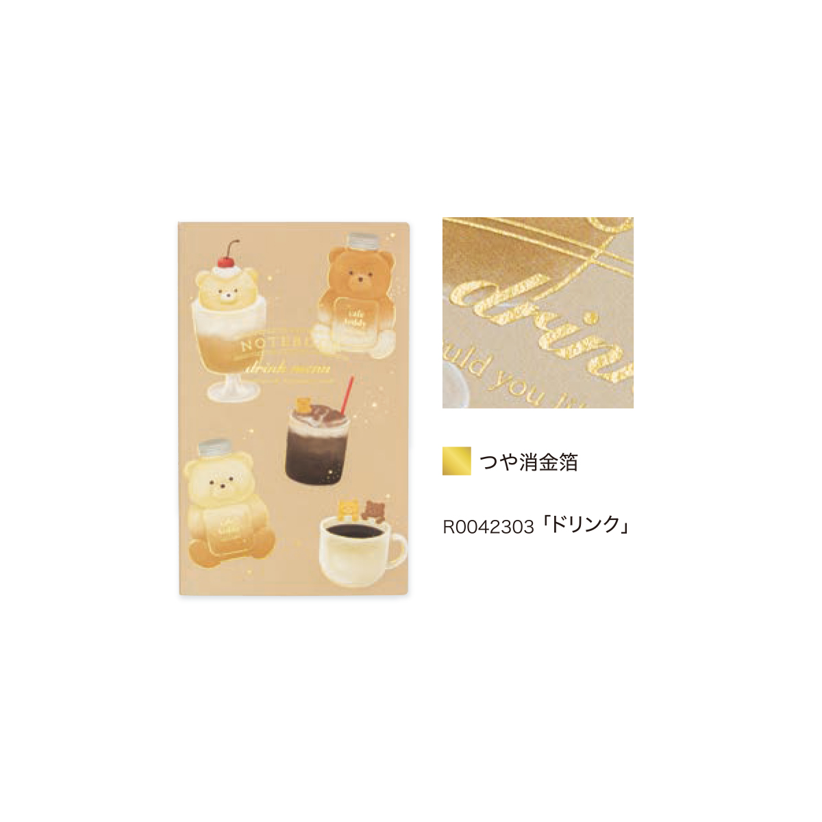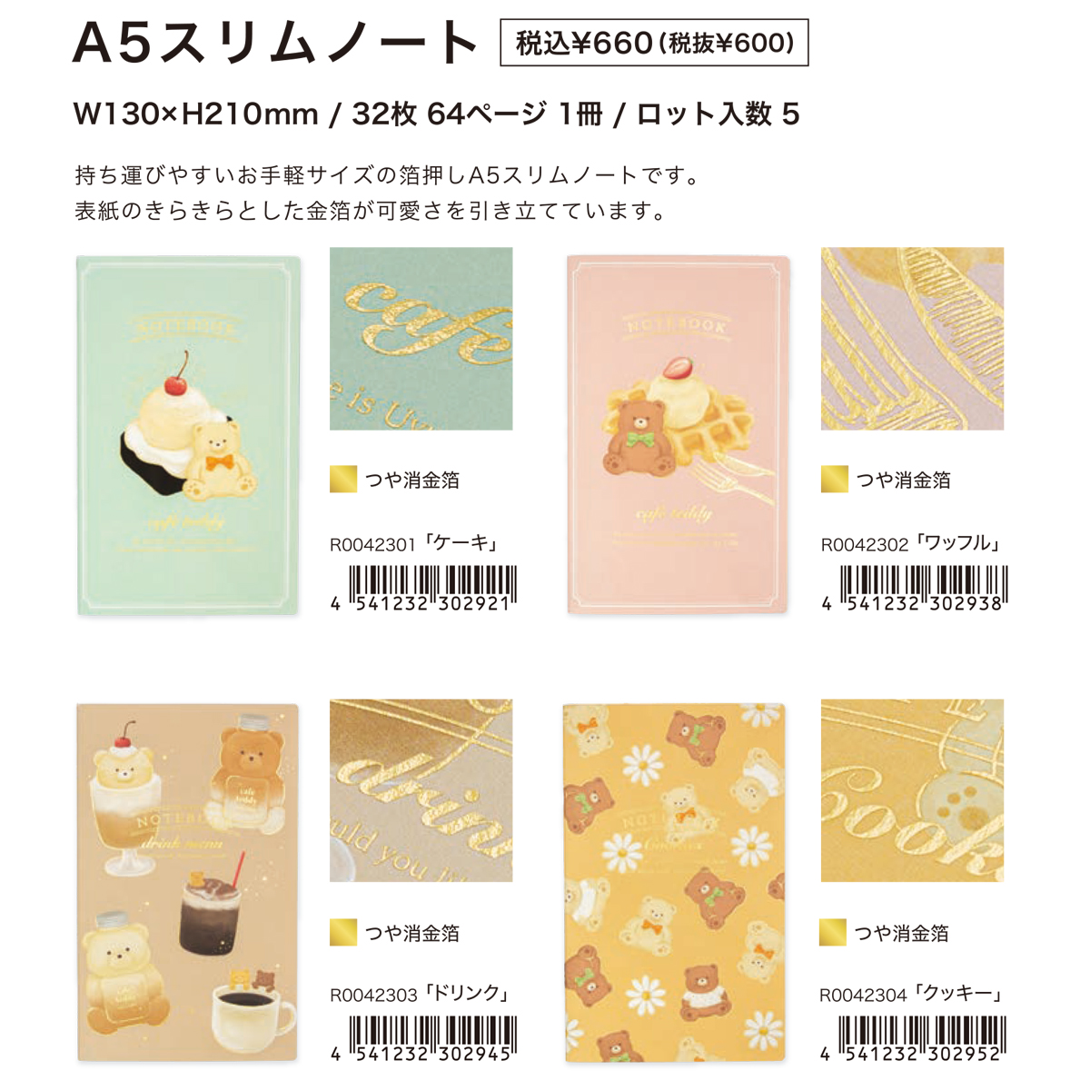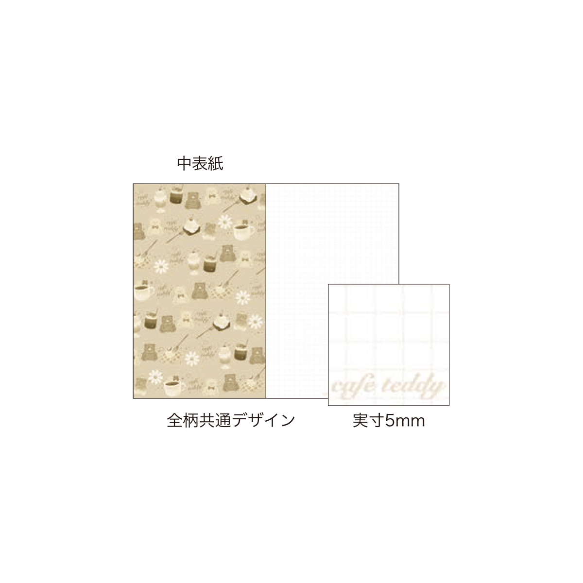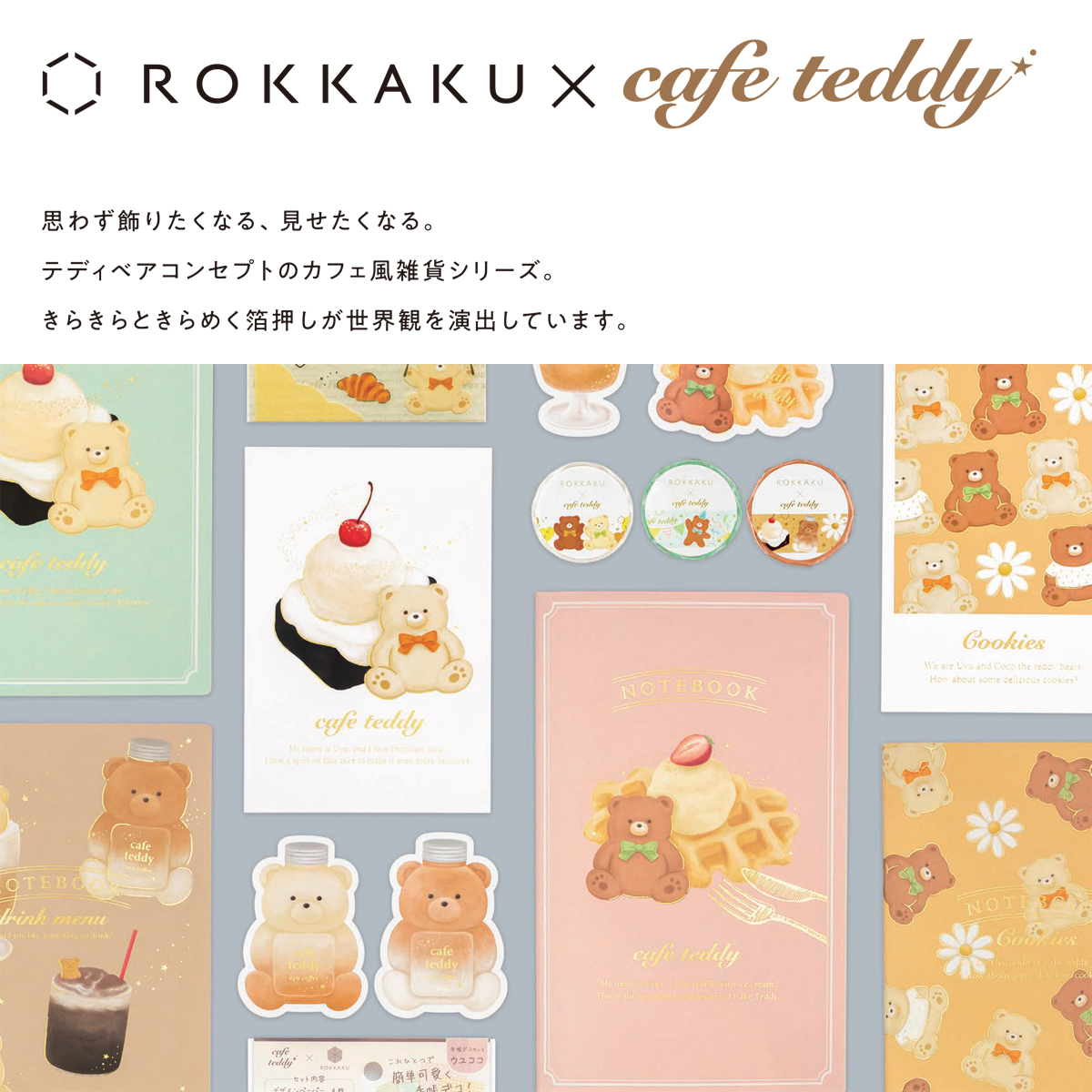 【ROKKAKU×cafe teddy】cafe teddy A5スリムノート 箔押し クマ カフェ風
