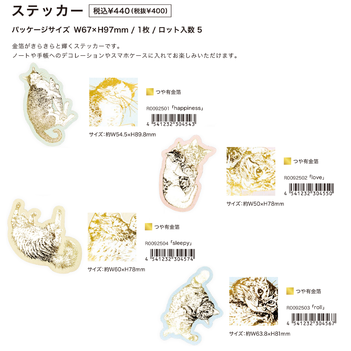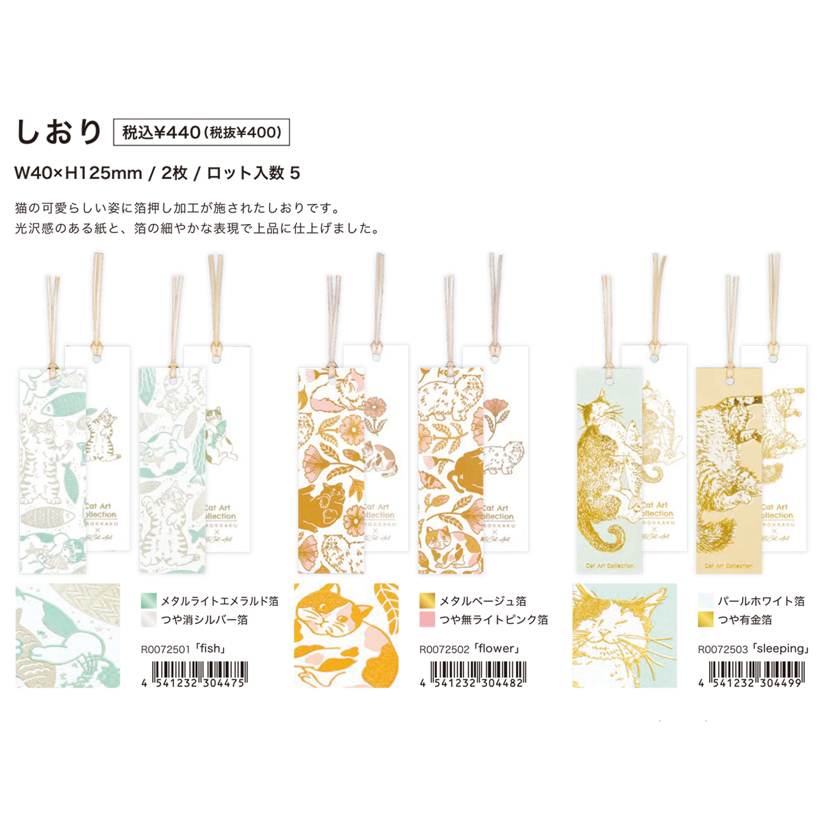 【ROKKAKU×365Cat.Art】Cat Art Collection しおり&ステッカー 箔押し 猫 ねこ
