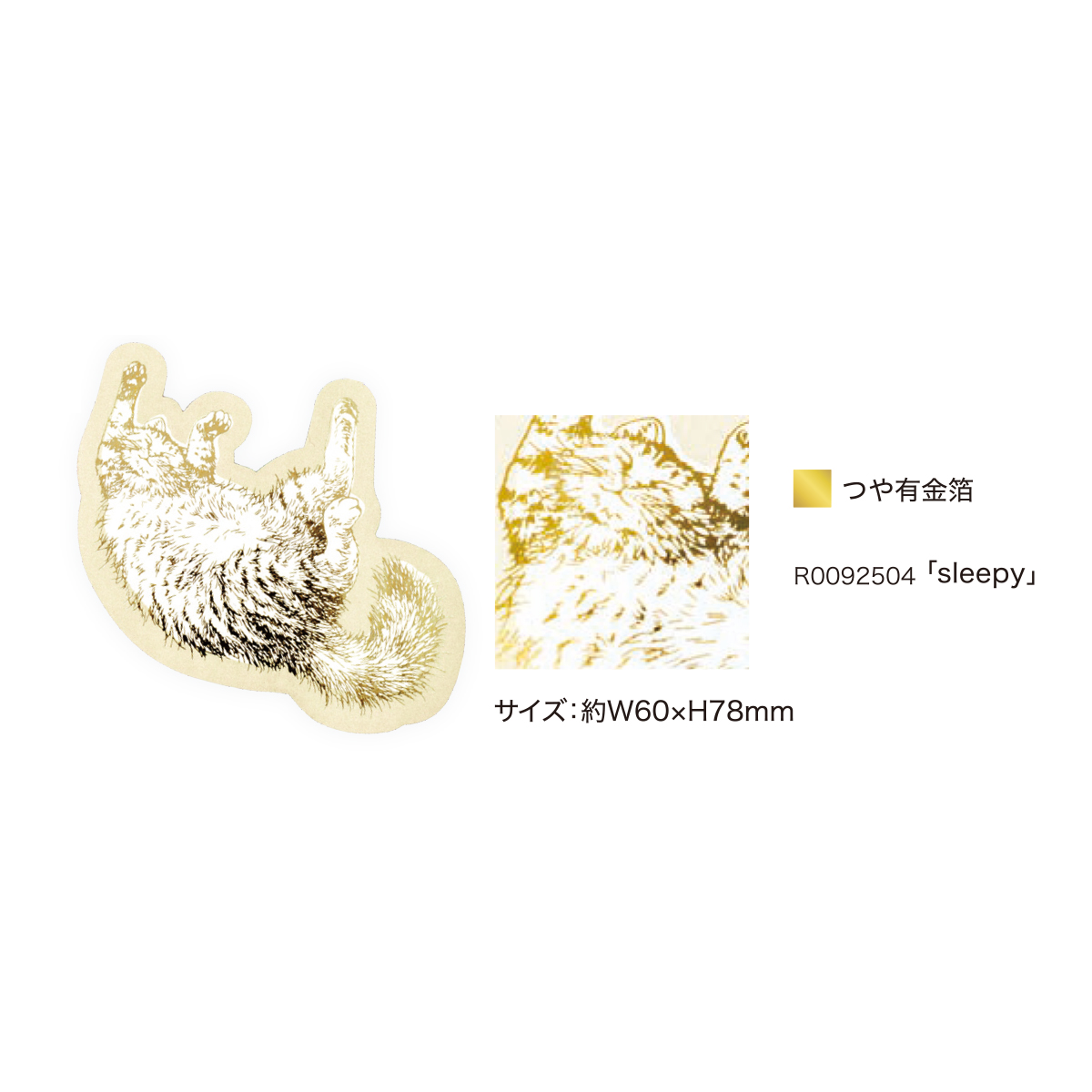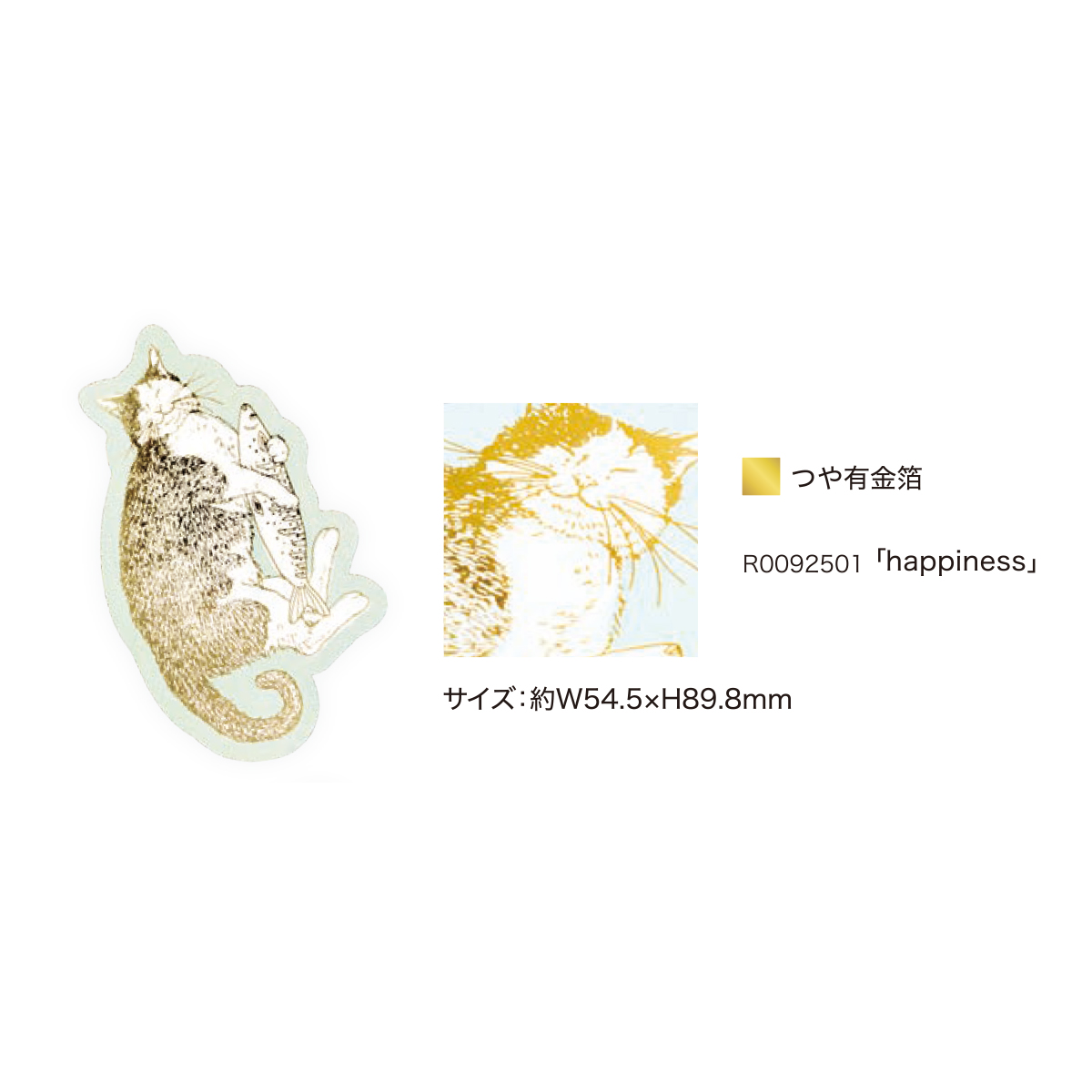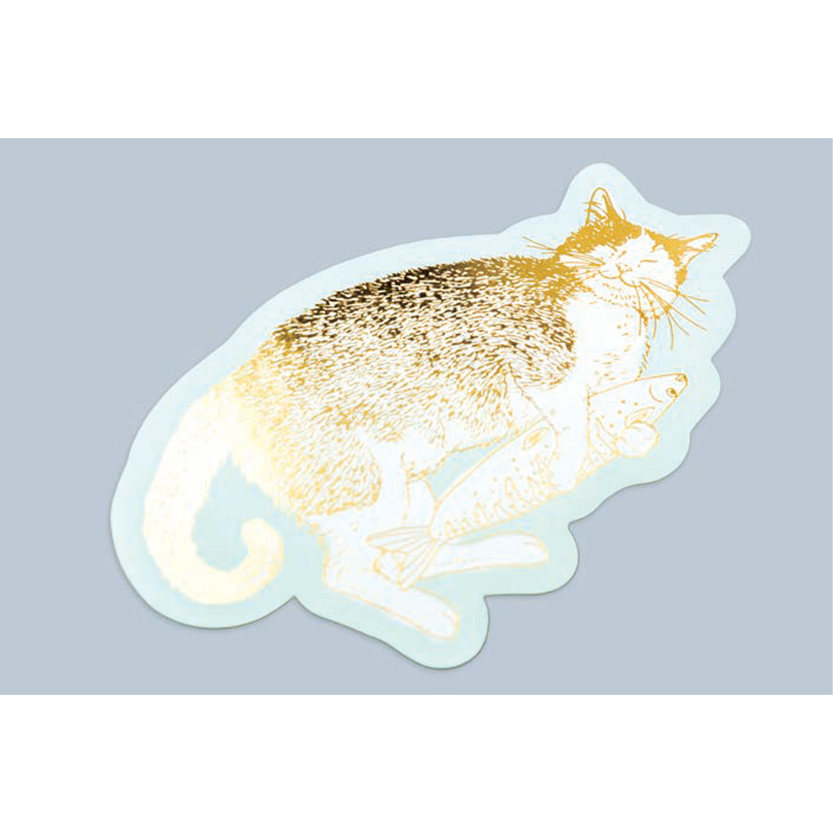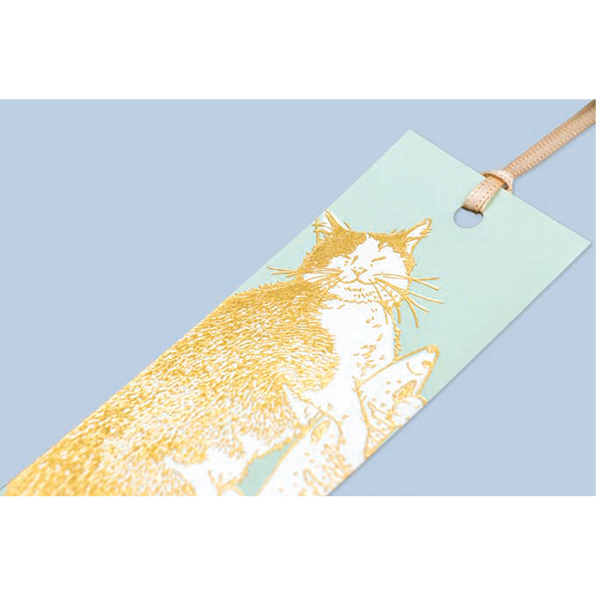 猫の可愛らしい姿に箔押し加工が施されたしおりです。