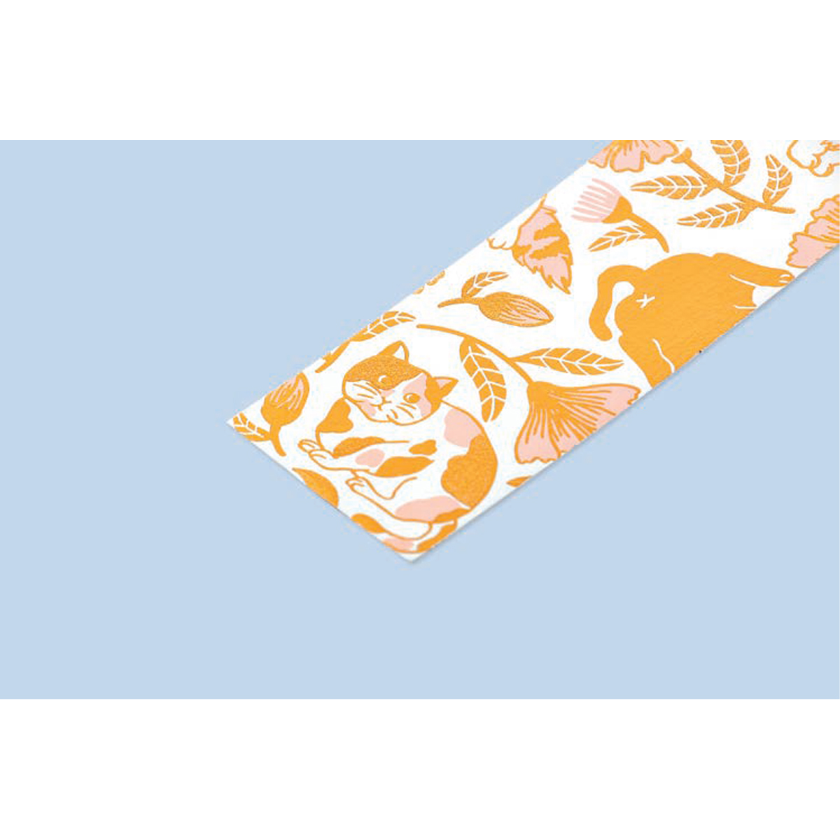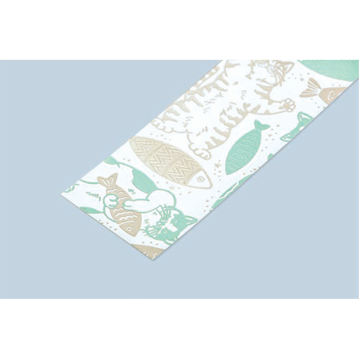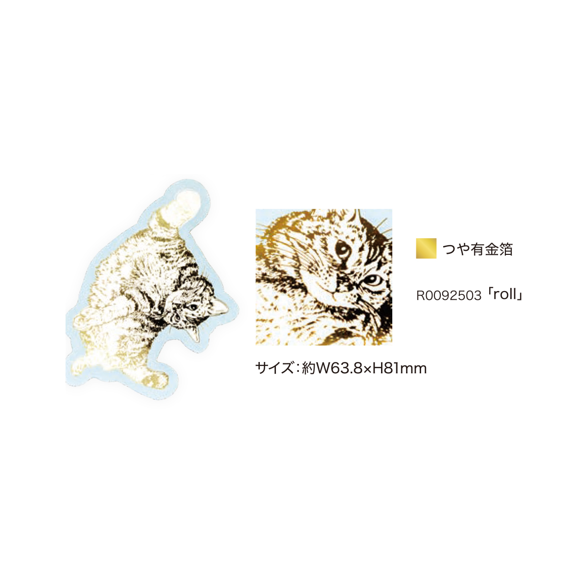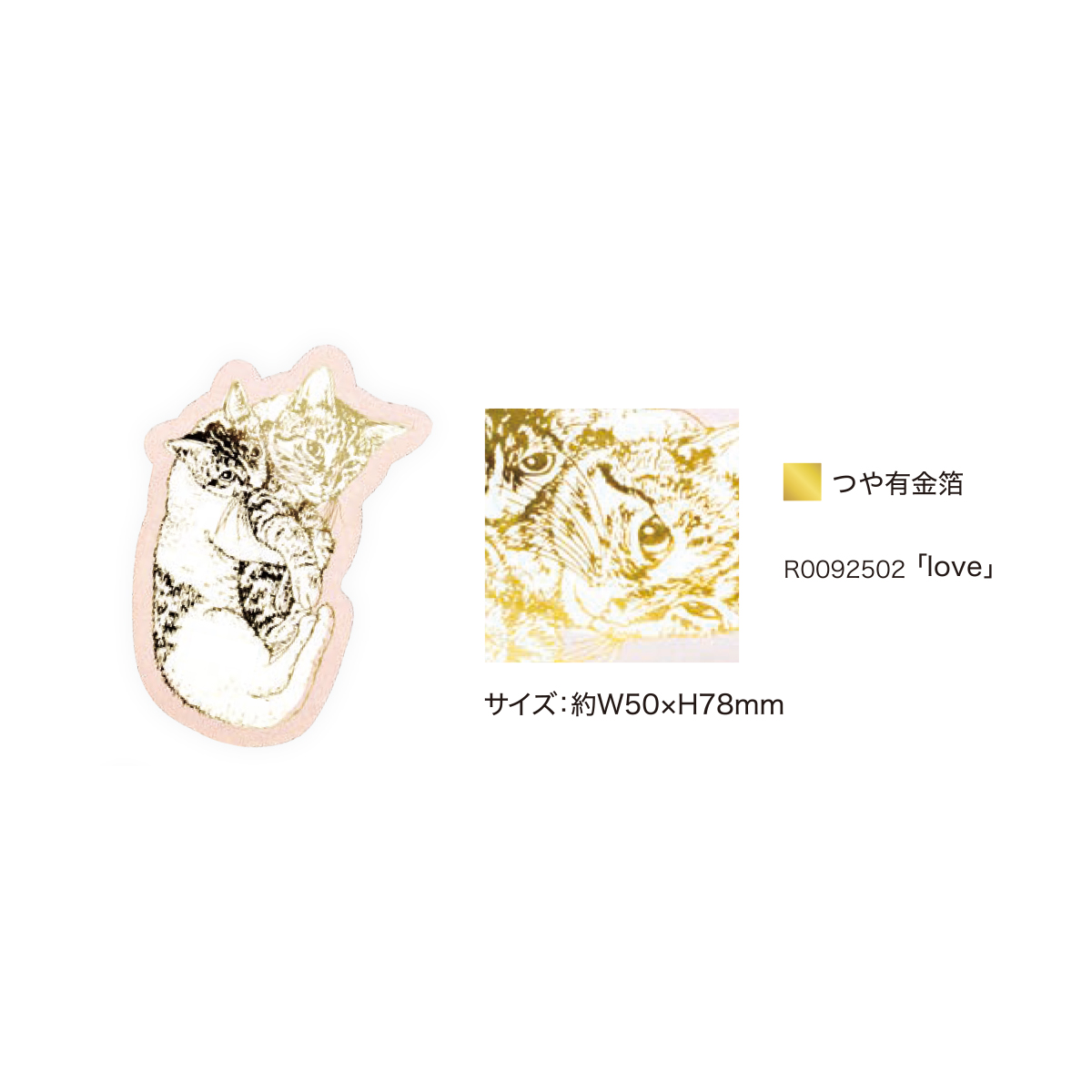 猫の可愛らしい姿に箔押し加工が施されたしおりです。