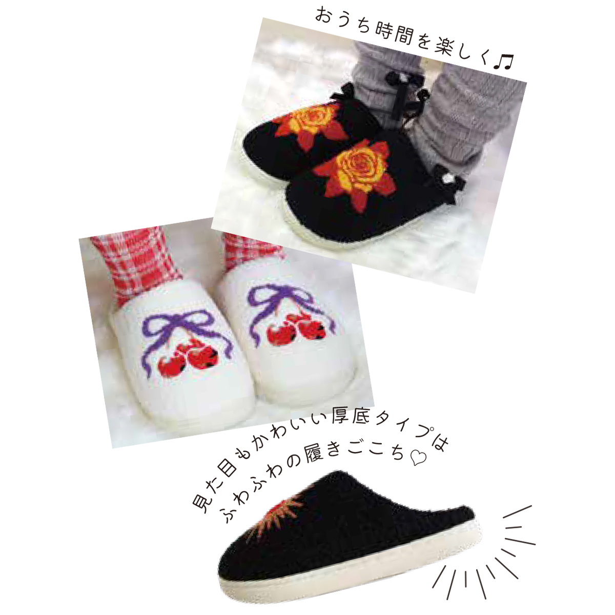 ・見た目もかわいい厚底タイプはふわふわの履きごこち♪