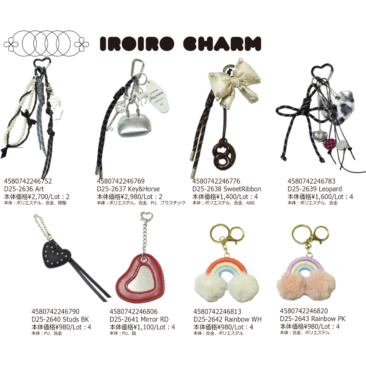 | 素材 | 【Art】ポリエステル、合金、樹脂 【Key&Horse】ポリエステル、合金、PU、プラスチック 【SweetRibbon】ポリエステル、合金、ABS 【Leopard】ポリエステル、合金 【Studs BK】PU、合金 【Mirror RD】PU、鏡 【Rainbow WH】合金、ポリエステル 【Rainbow PK】合金、ポリエステル |