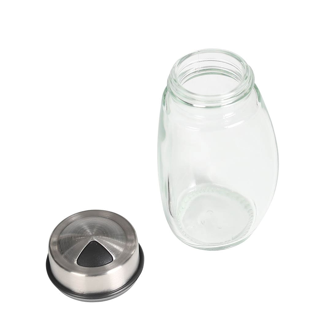 丸みを帯びた三角形のガラス容器は扱いやすく、生活感の出やすい調味料の整理に最適です。