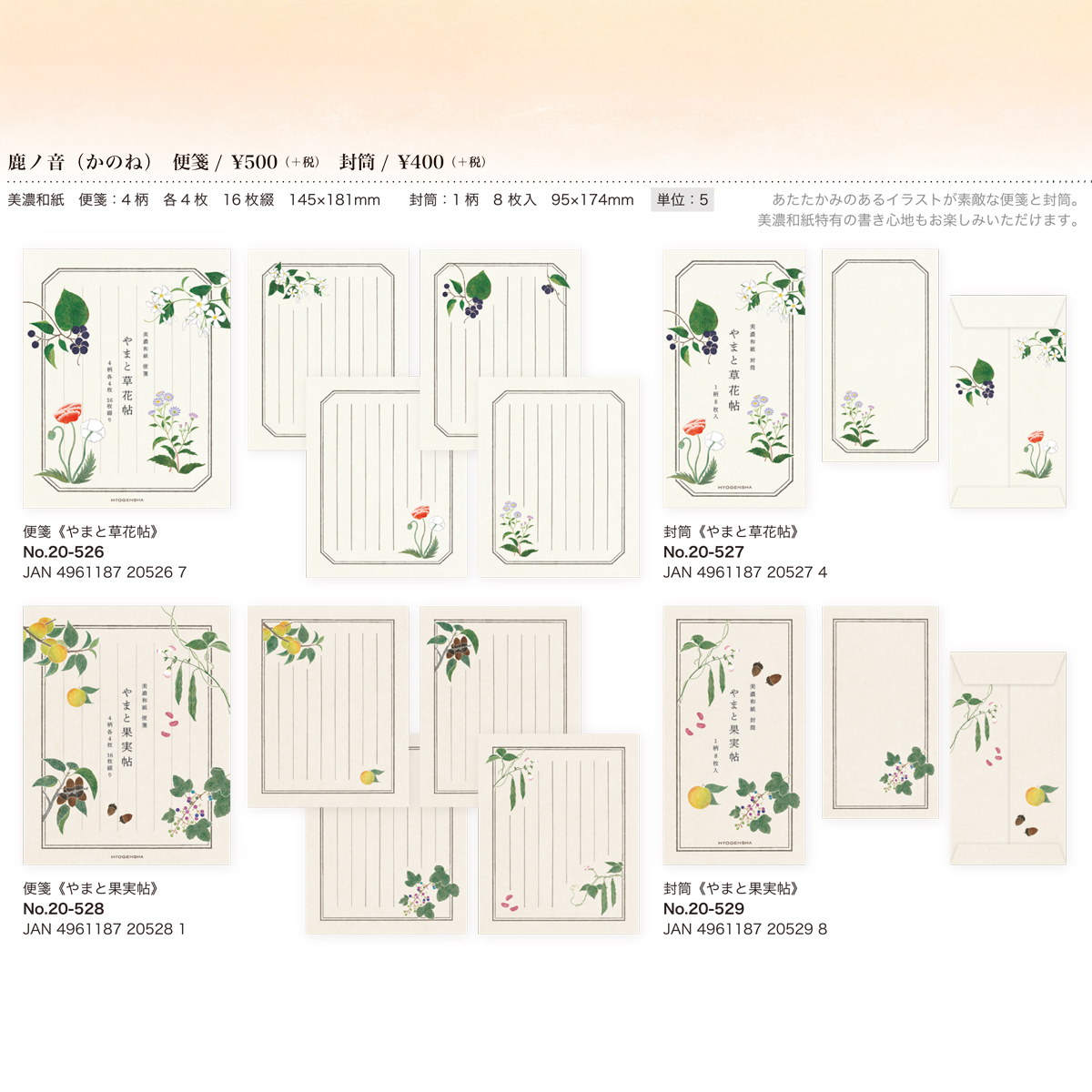 【鹿ノ音シリーズ】鹿ノ音〈カノネ〉便箋&封筒 やまと草花帖&果実帖