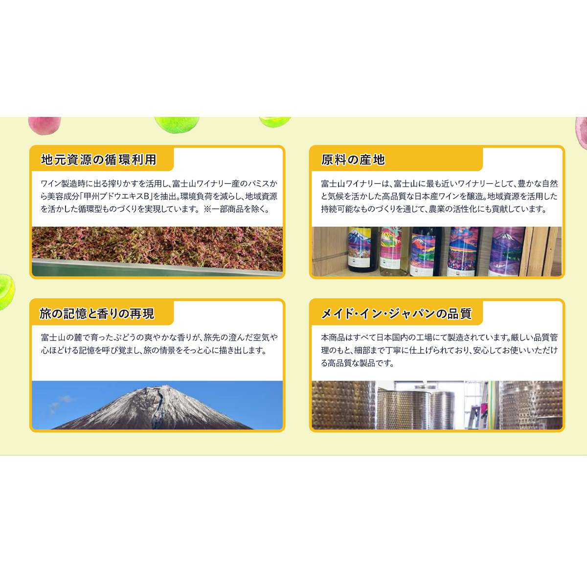 この成分は、富士山の麓で育ったぶどうを、ワイン製造時に生じるワインパミス(残渣)から