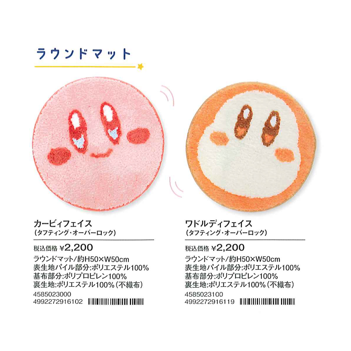 カービィとワドルディのまんまるな姿をイメージしたラウンドマットです。