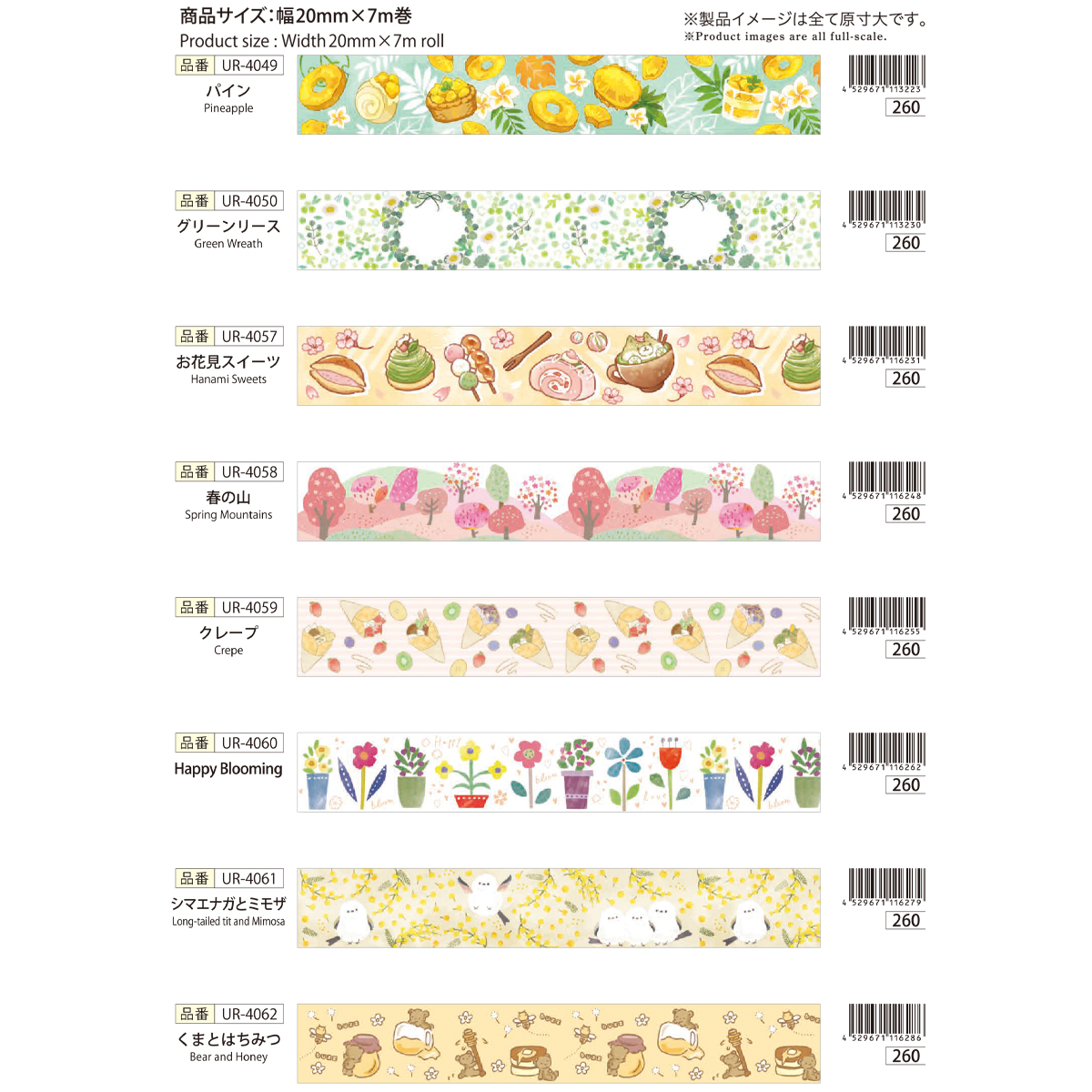 【SAIEN】オリジナルシリーズ マスキングテープ20mm 和紙 お花見&シマエナガ&ミモザ
