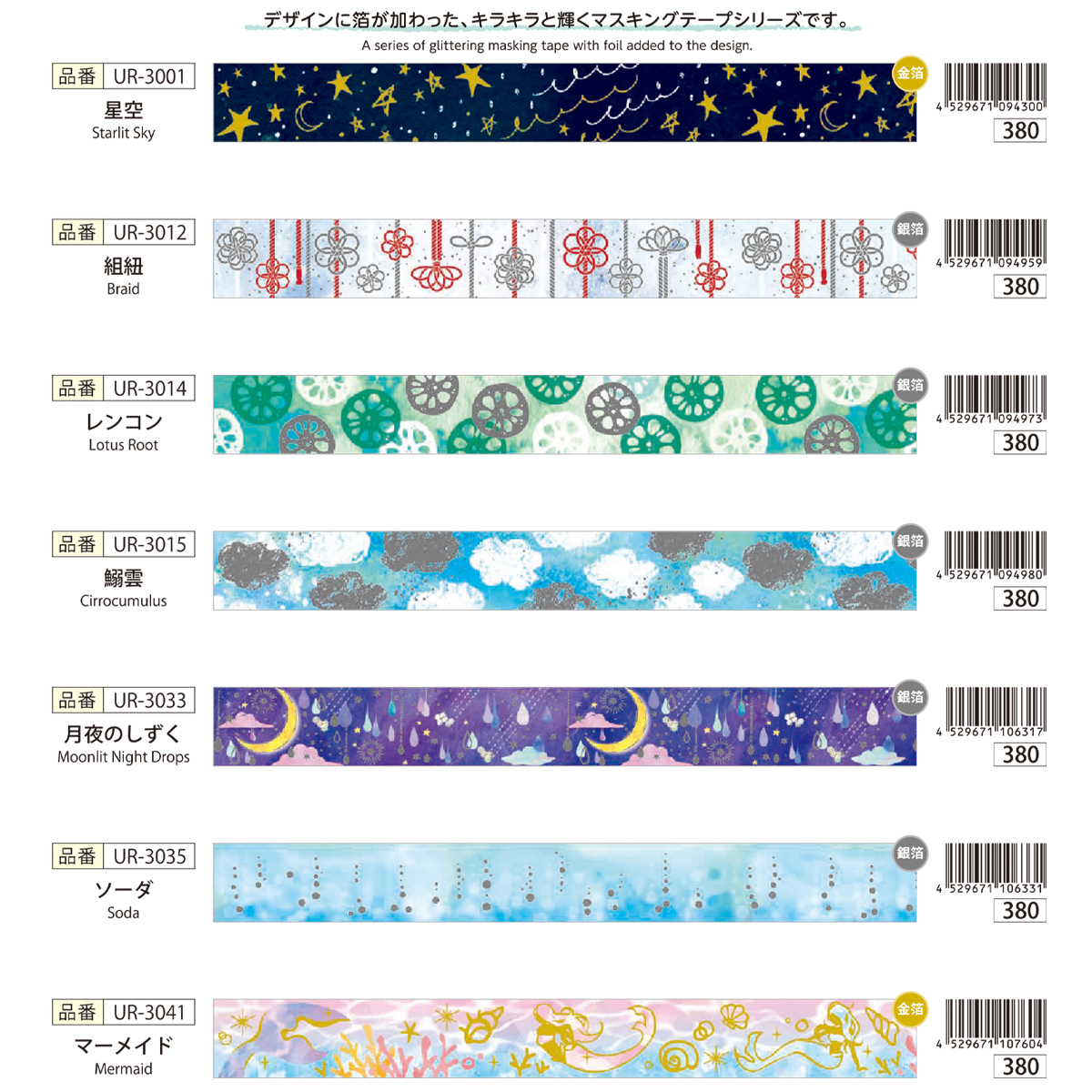 デザインに箔が加わった、キラキラと輝くマスキングテープシリーズです。