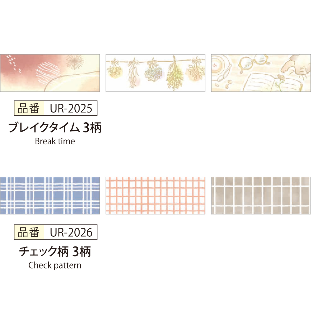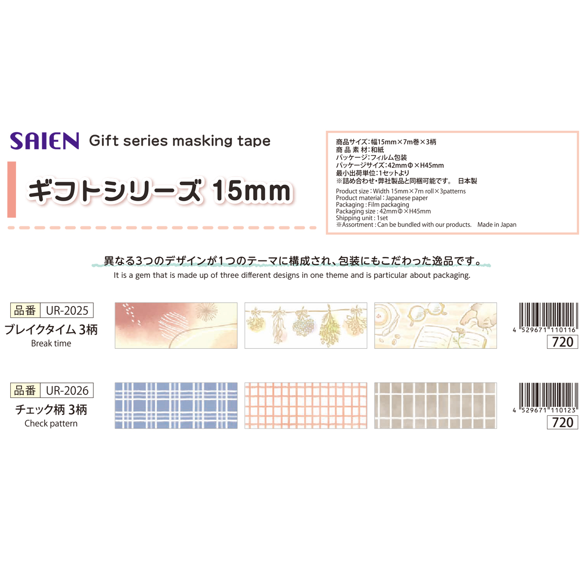 【SAIEN】オリジナルシリーズ ギフト マスキングテープ15mm 和紙 ブレイクタイム&チェック柄