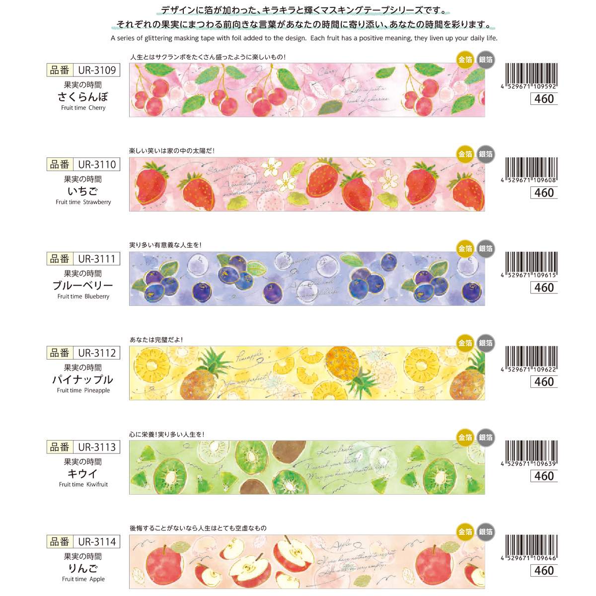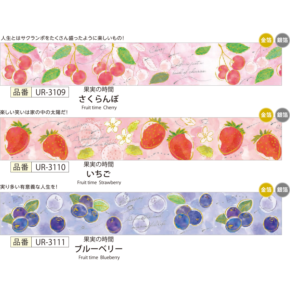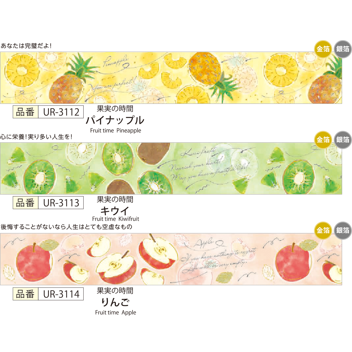 【SAIEN】オリジナルシリーズ 果実の時間 金箔&銀箔 マスキングテープ20mm 和紙