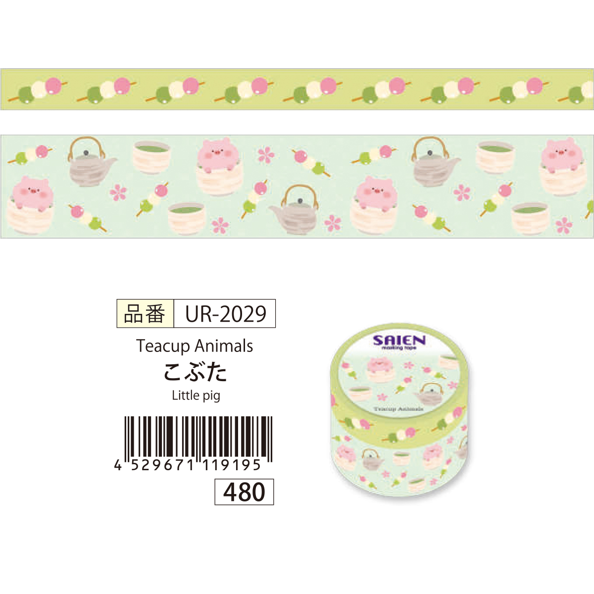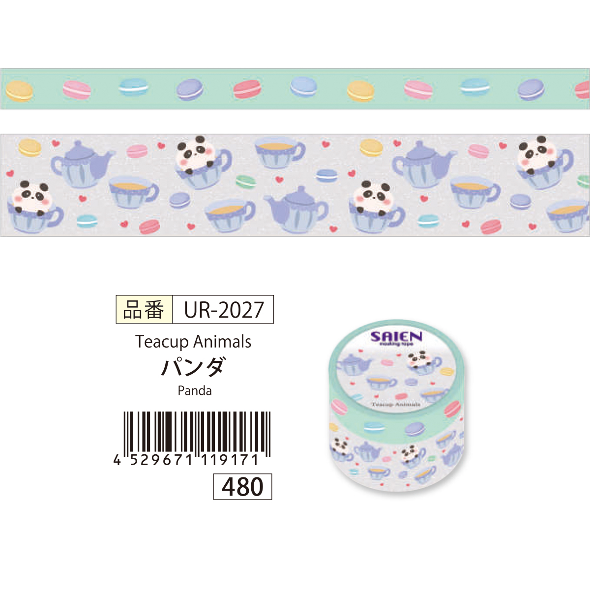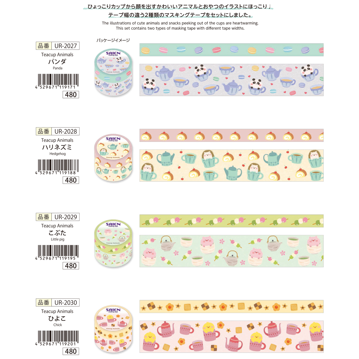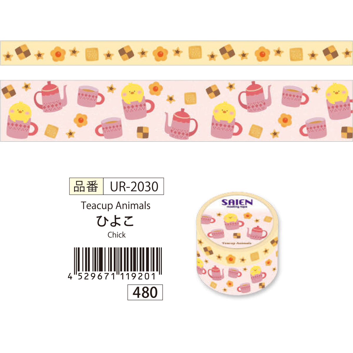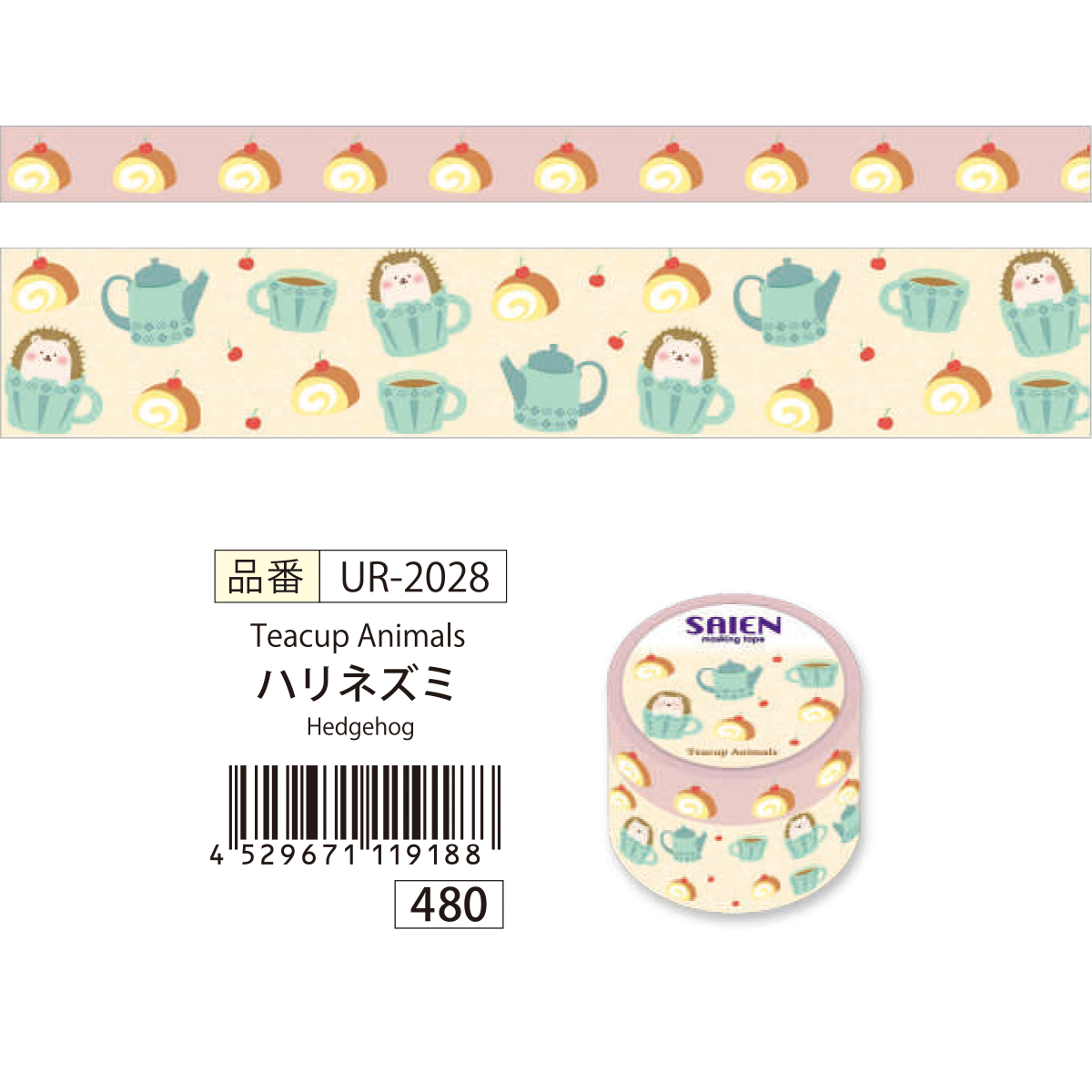 【SAIEN】オリジナルシリーズ Teacup Animals マスキングテープ 和紙
