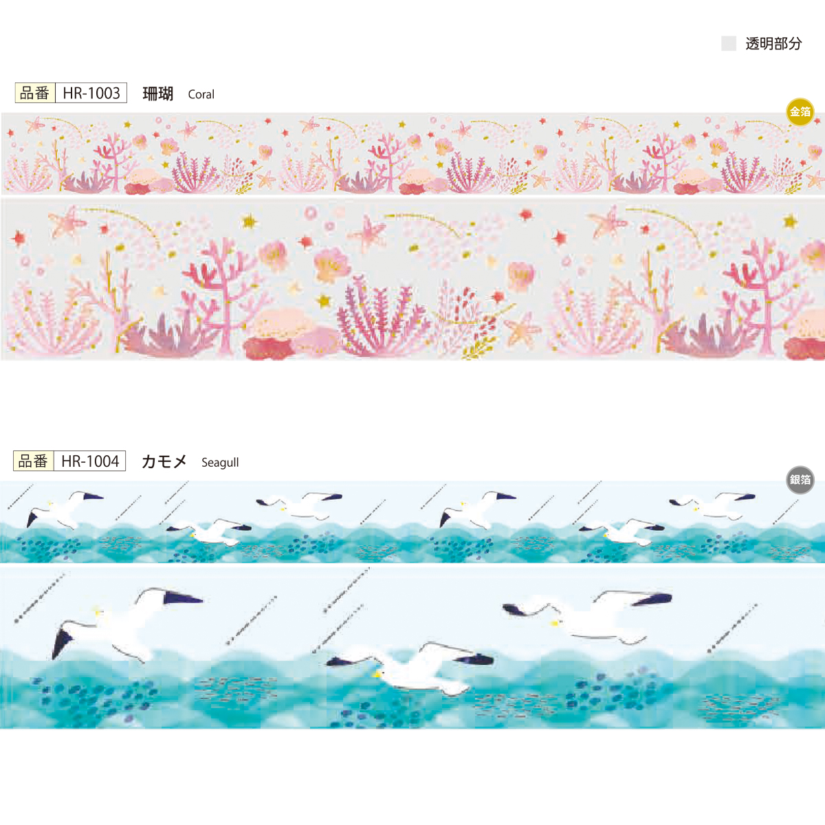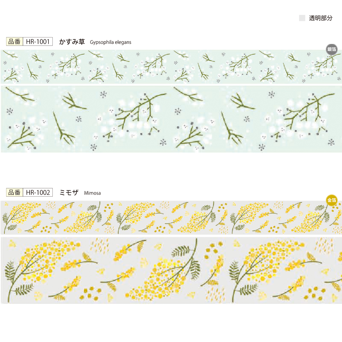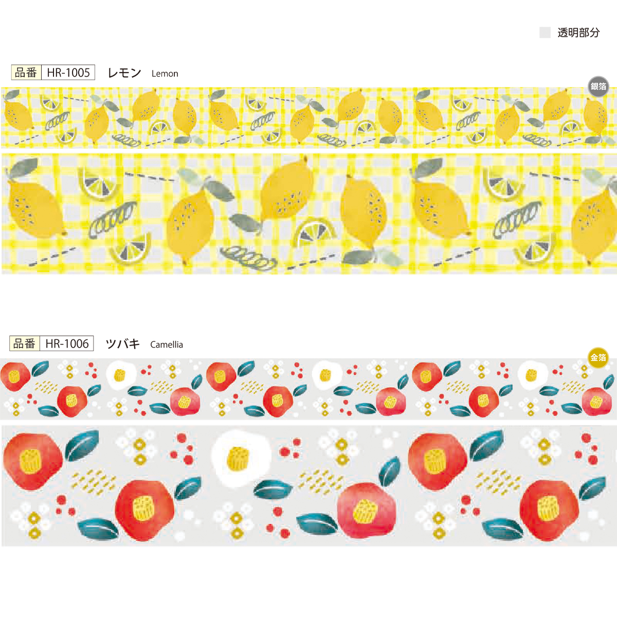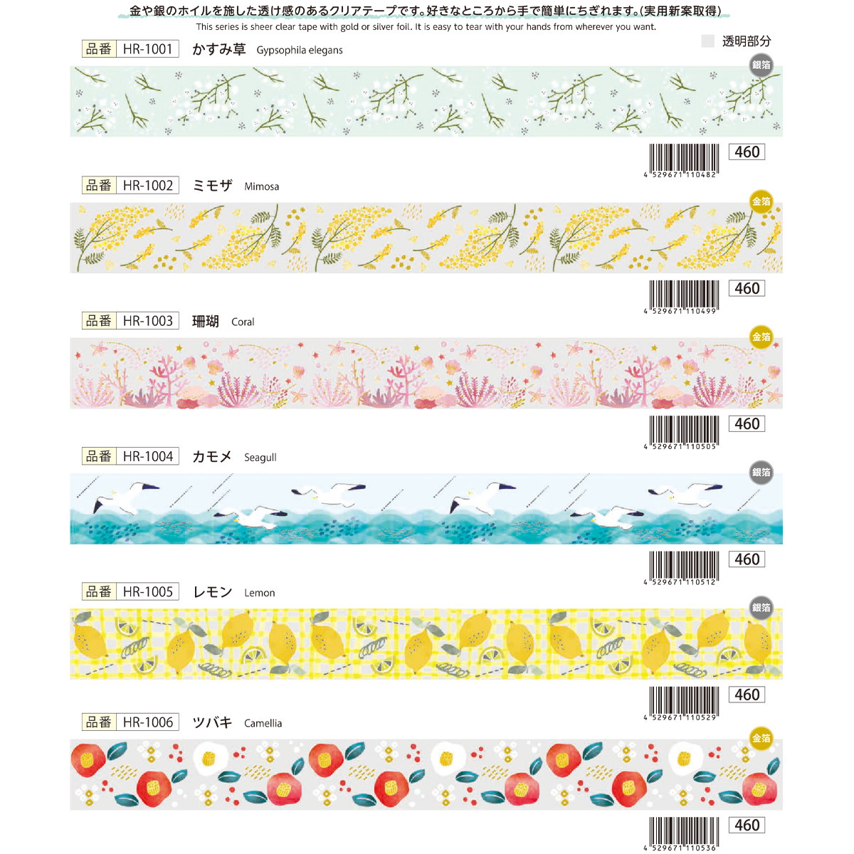 金や銀のホイルを施した透け感のあるクリアテープです。