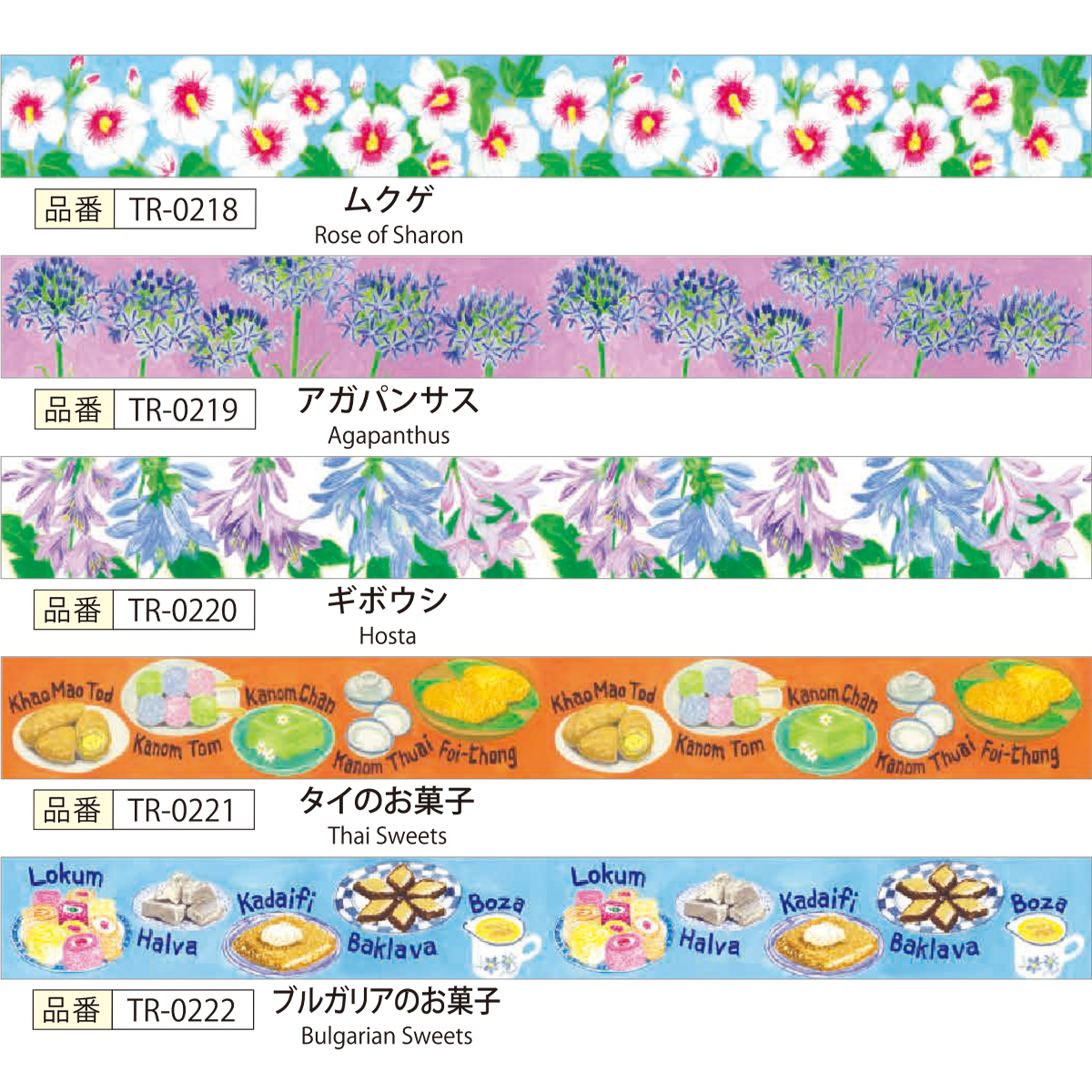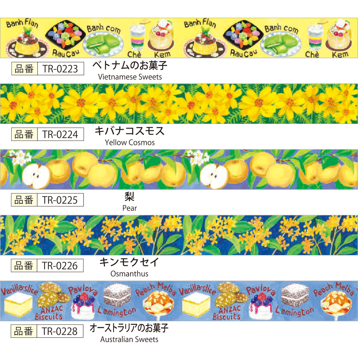 植物、食べ物、動物などのイラストを手描きで温かみの感じられるマスキングテープに仕上げました。
