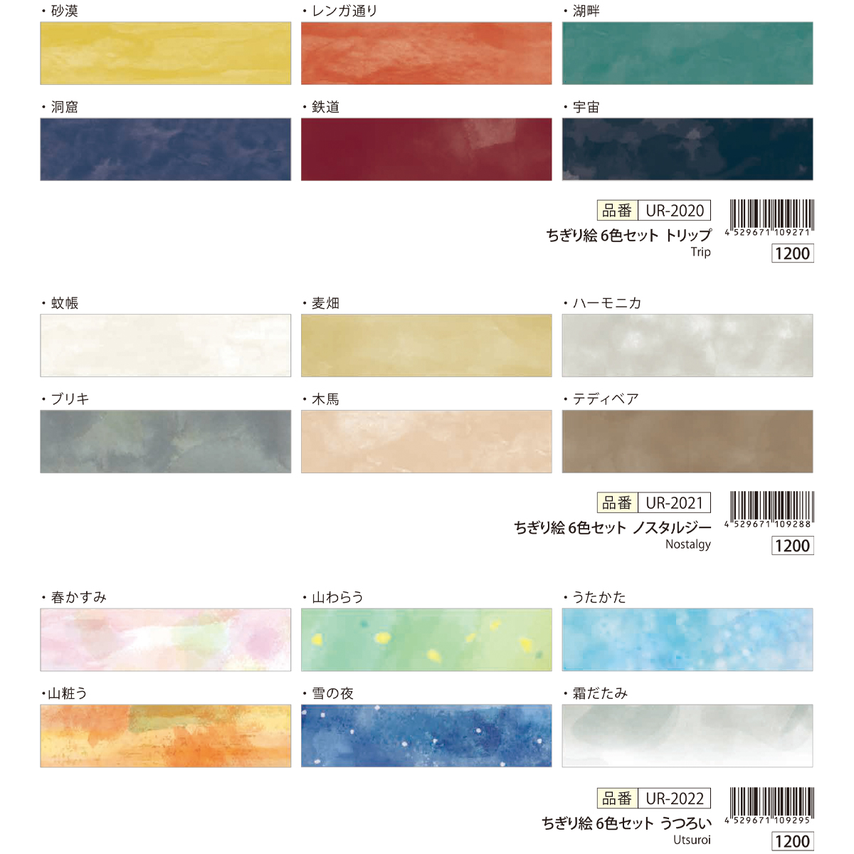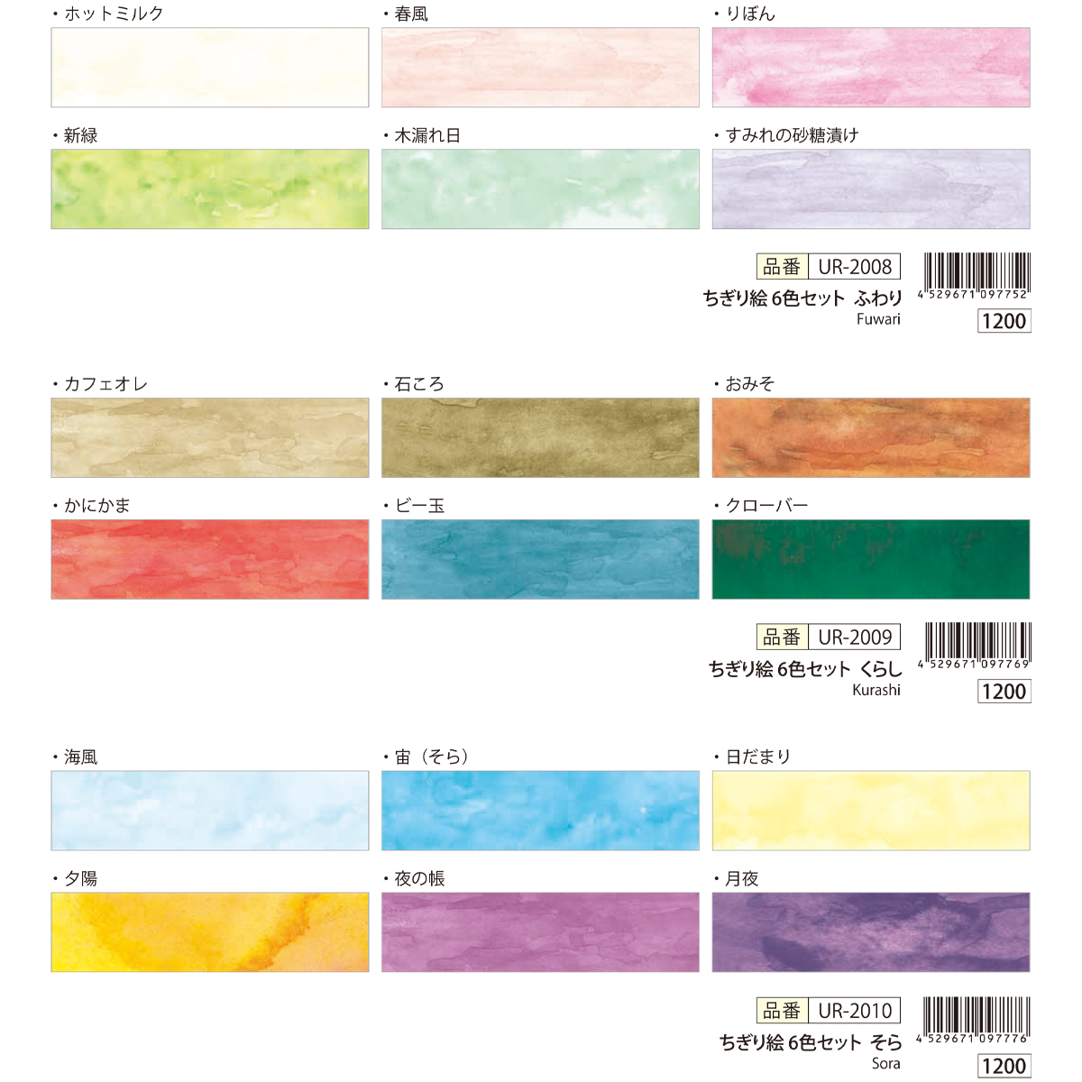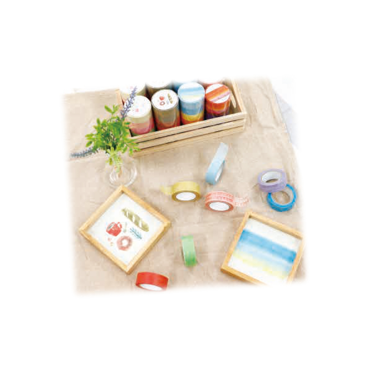 マスキングテープちぎり絵作家、田村美紀監修。重ね貼りをすると色の濃淡が楽しめるセットです。