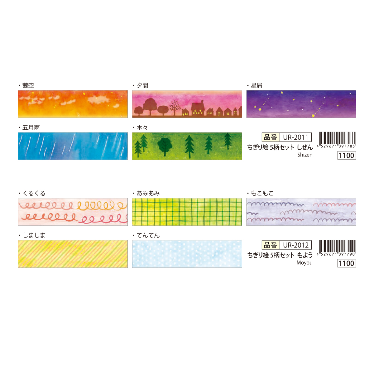 サイズ | 【ちぎり絵6色セット】 15mm×7m×6色 パッケージサイズ:42mmφ×H90mm 【ちぎり絵5柄セット】 15mm×7m×5柄 パッケージサイズ:42mmφ×H75mm |