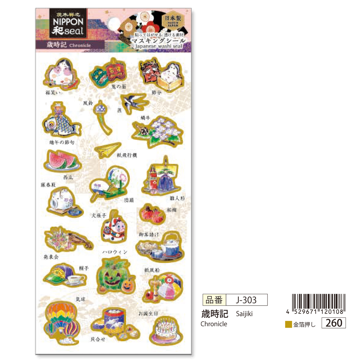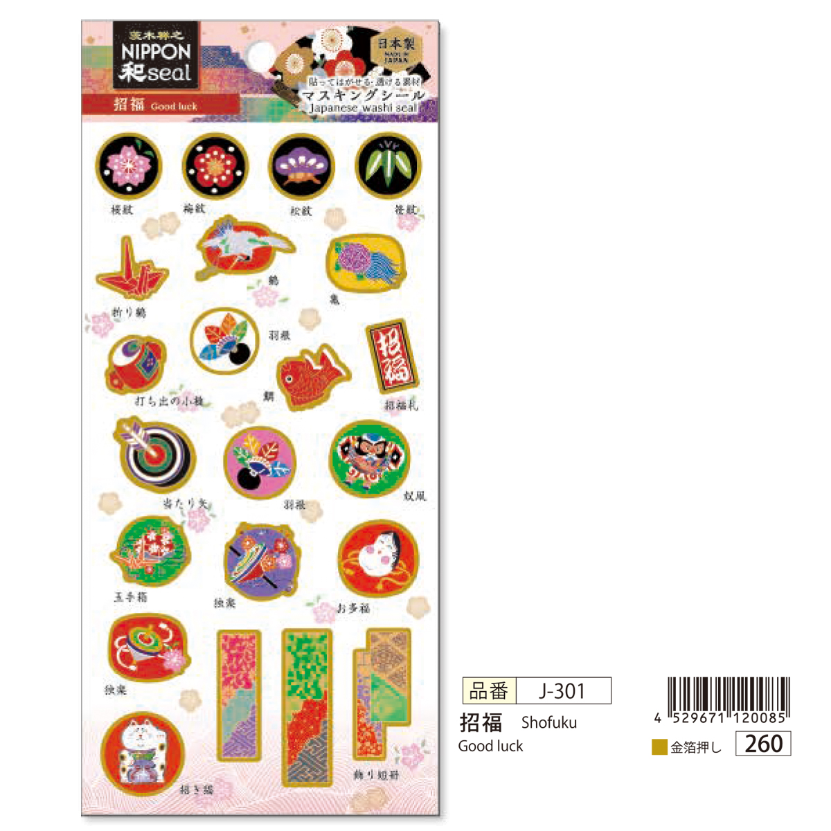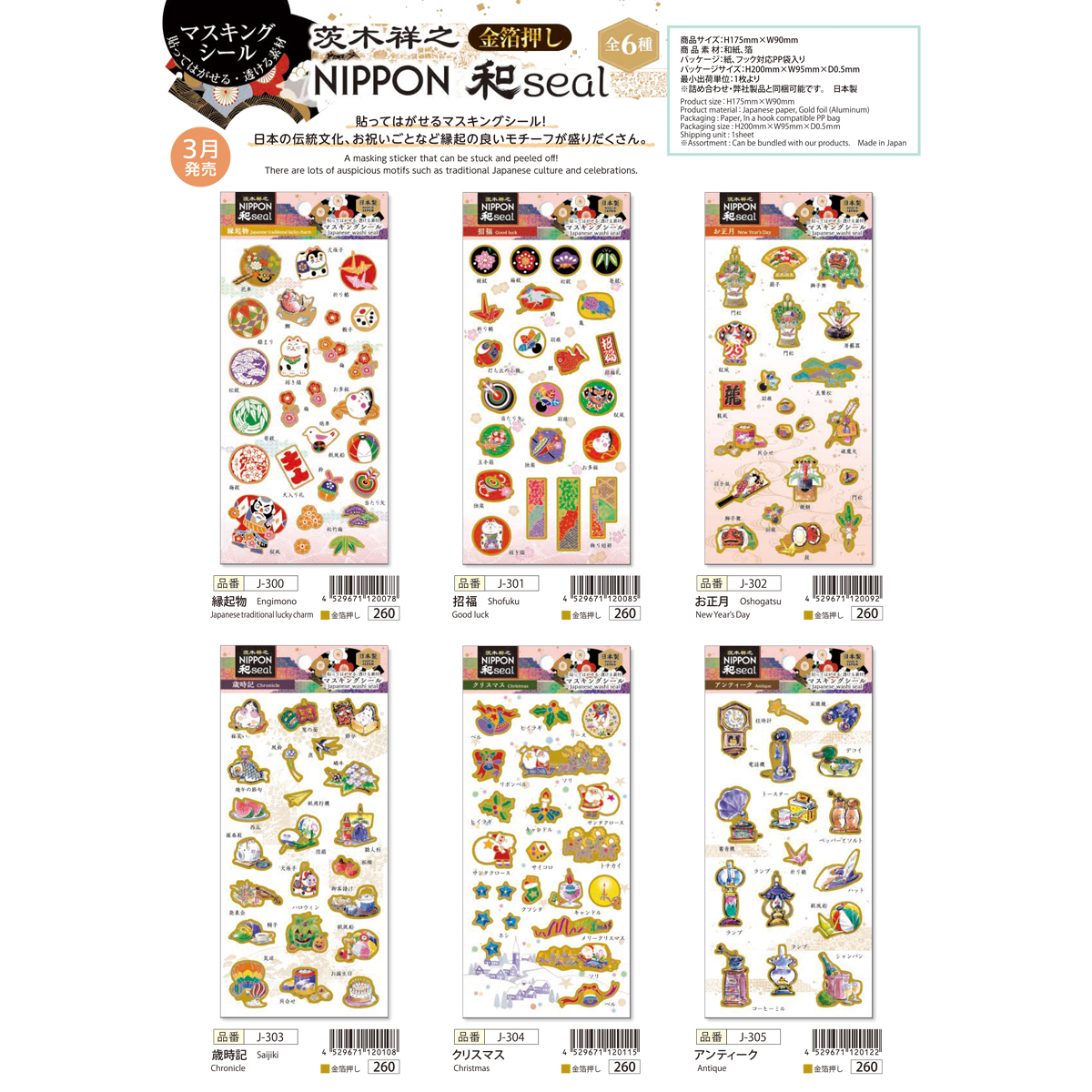 【SAIEN】作家シリーズ 茨木祥之 金箔押しマスキングシール 和紙 日本 縁起物
