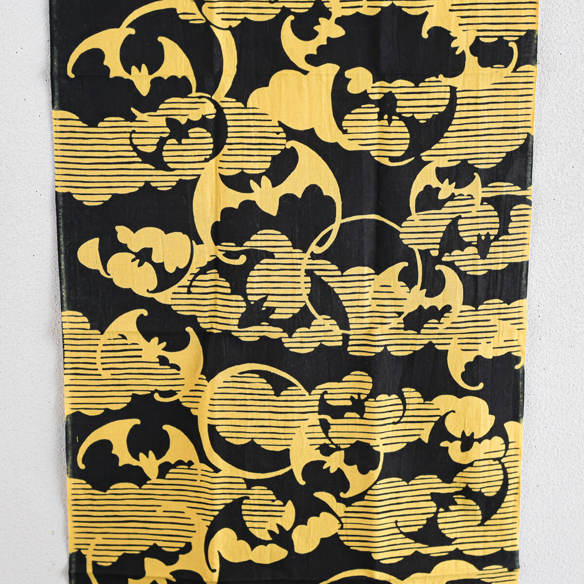 蝙蝠の「蝠」の字は中国では「福」の発音に近いことから、古くより縁起の良い生き物とされています。 日本でも「幸盛り」や「幸守り」という当て字で表現されることがあります。 江戸後期の歌舞伎役者七代目團十郎も蝙蝠に三升柄のゆかたを着用しており、当時の庶民の間で広く愛されました。