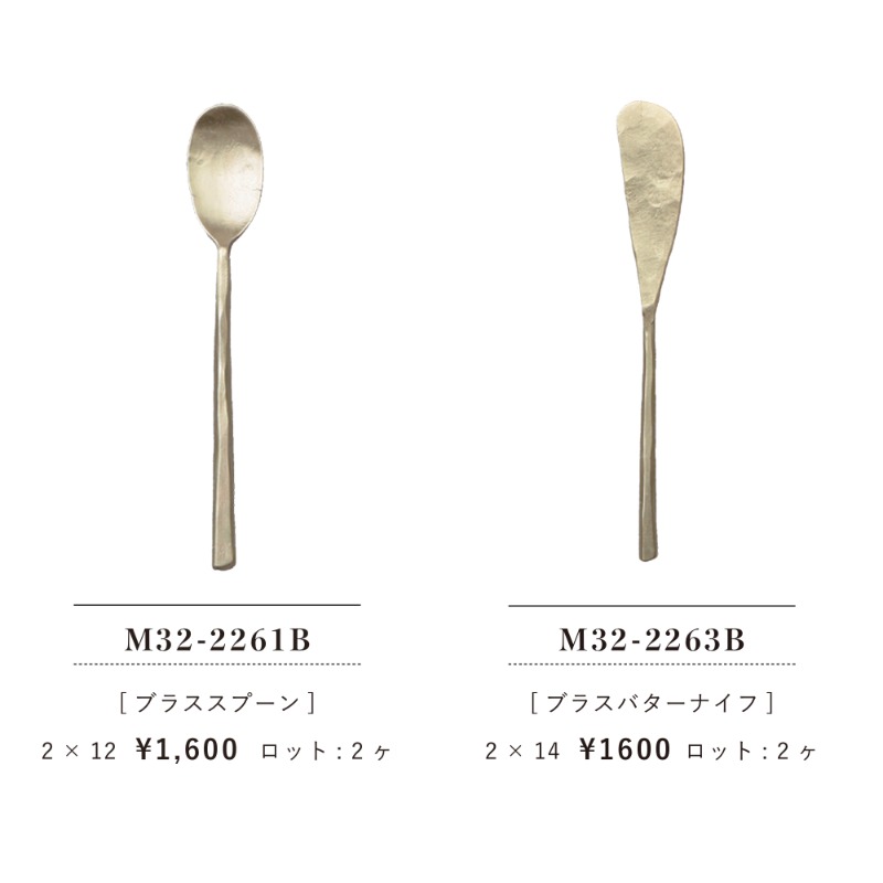 サイズ | 【M32-2261B ブラススプーン】2×12 【M32-2263B ブラスバターナイフ】2×14 |