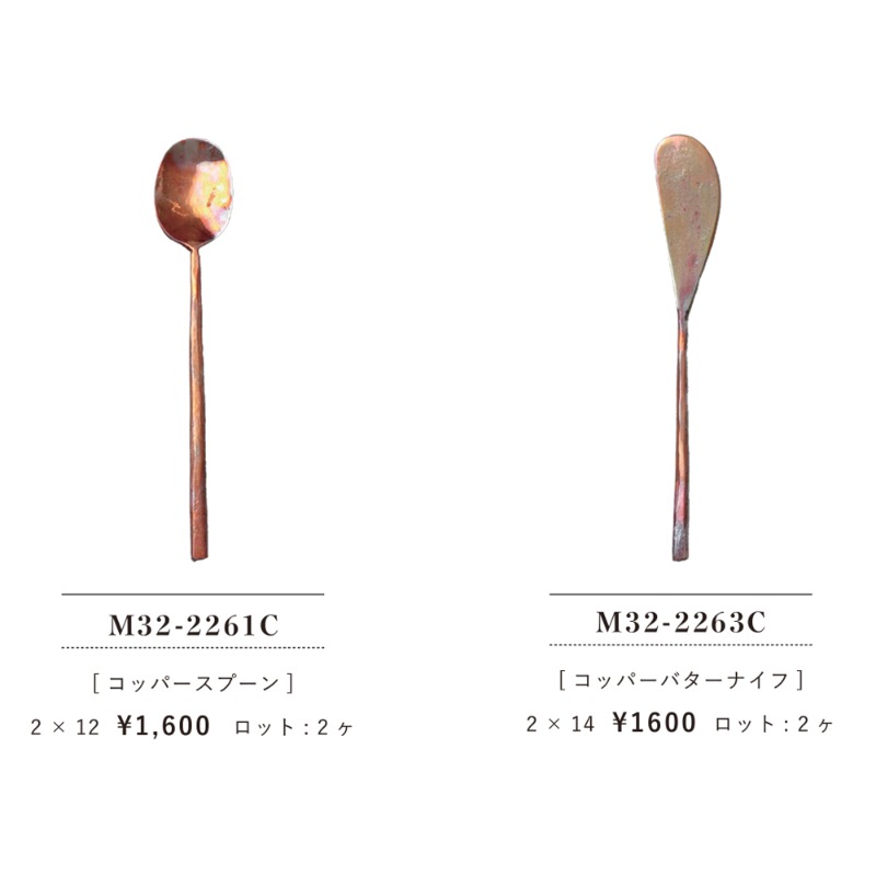 サイズ | 【M32-2261C コッパースプーン】2×12 【M32-2263C コッパーバターナイフ】2×14 |