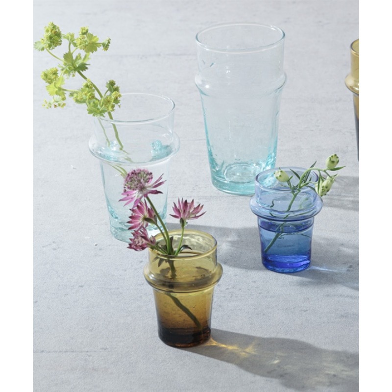 新作のミニサイズのモロッコグラスはグラスとしてはもちろん、一輪の小花を飾るミニ花瓶としても。