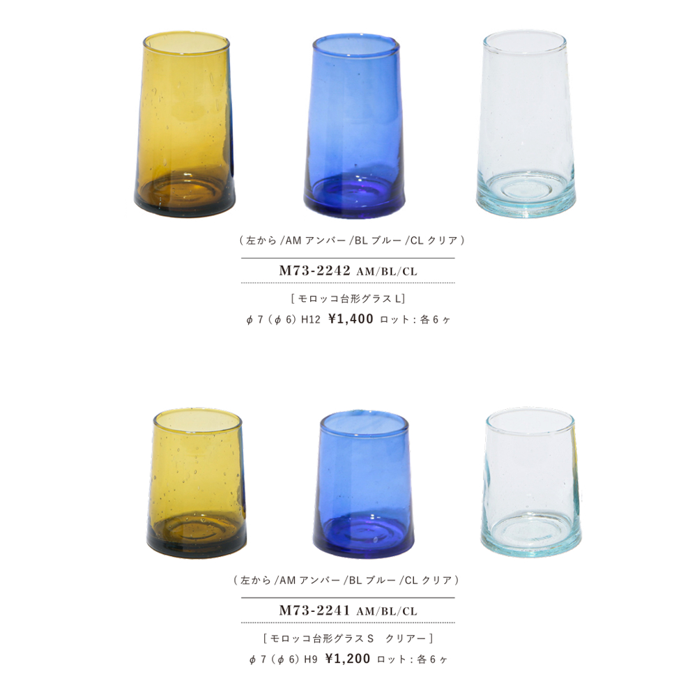 サイズ | 【M73-2242 モロッコ台形グラスL】Φ7(Φ6) H12 【M73-2241 モロッコ台形グラスS】Φ7(Φ6) H9 |