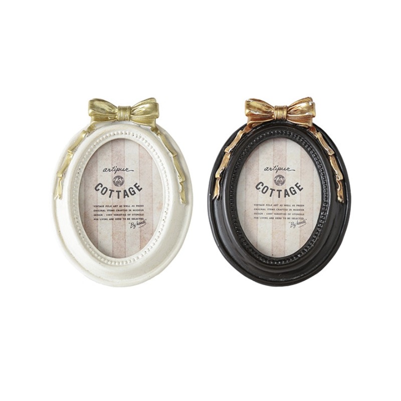 【東京かんかん】レジン製アンティークフォトフレーム オーバルリボン 写真立て フェミニン