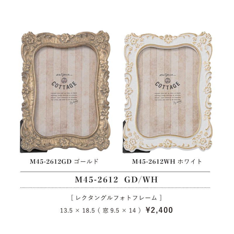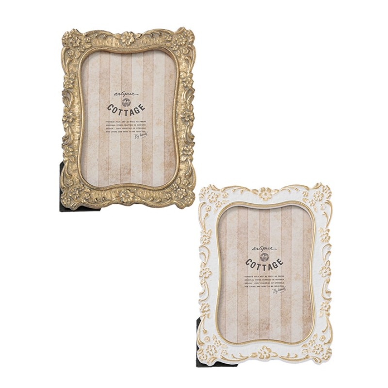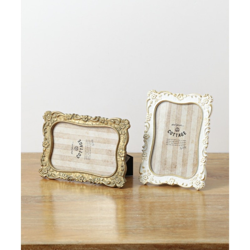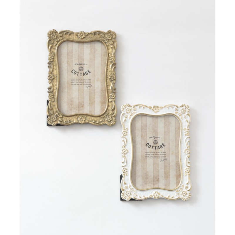 やさしい白やグレーのアンティークカラーが魅力の、レジン製フォトフレームシリーズ。