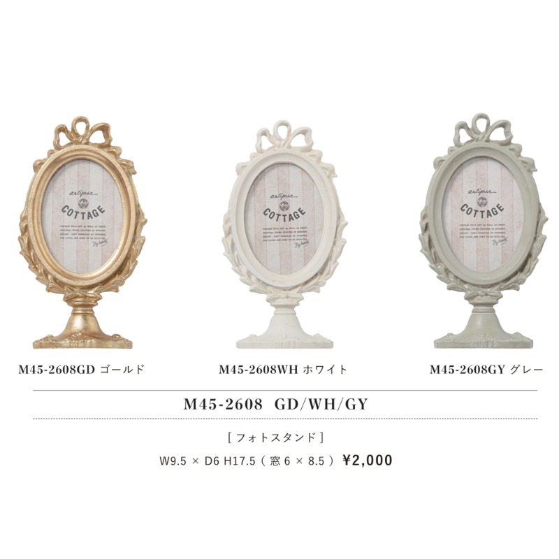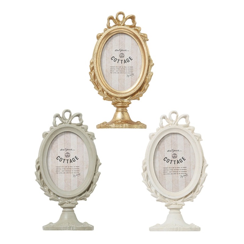 やさしい白やグレーのアンティークカラーが魅力の、レジン製フォトフレームシリーズ。
