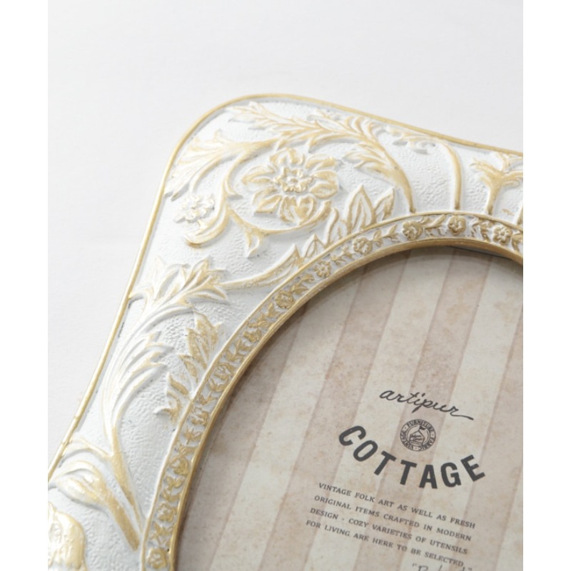 やさしい白やグレーのアンティークカラーが魅力の、レジン製フォトフレームシリーズ。