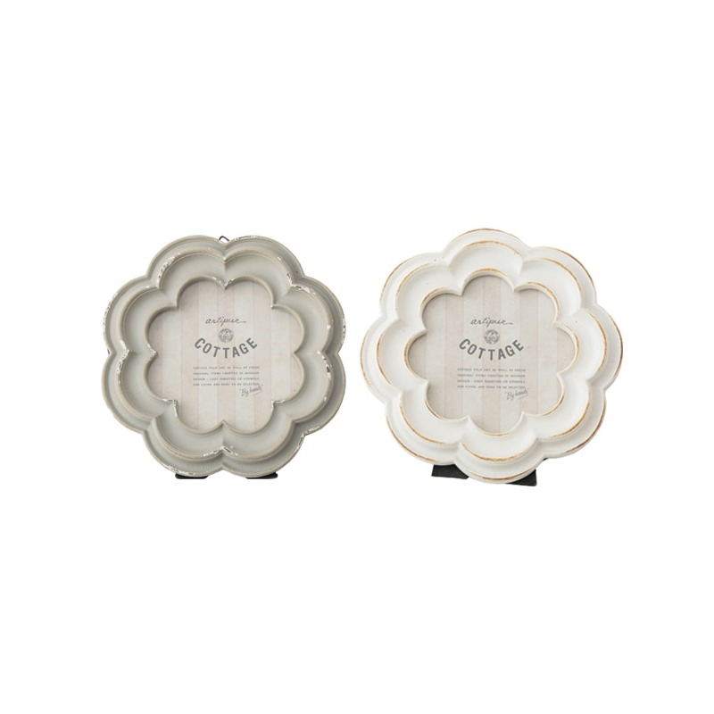 やさしい白やグレーのアンティークカラーが魅力の、レジン製フォトフレームシリーズ。
