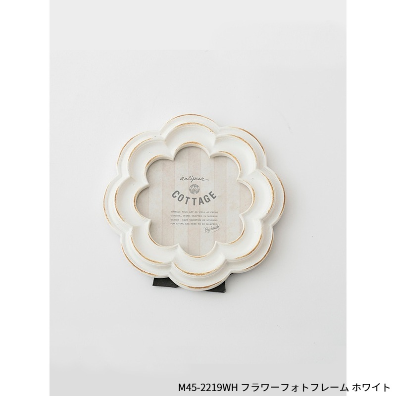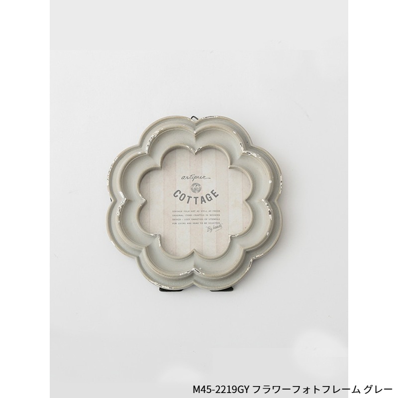 【東京かんかん】レジン製アンティークフォトフレーム フラワー ホワイト&グレー 写真立て フェミニン