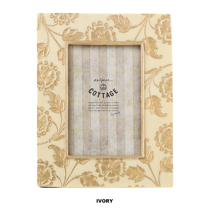 やさしい白やグレーのアンティークカラーが魅力の、レジン製フォトフレームシリーズ。