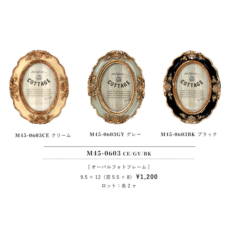 やさしい白やグレーのアンティークカラーが魅力の、レジン製フォトフレームシリーズ。